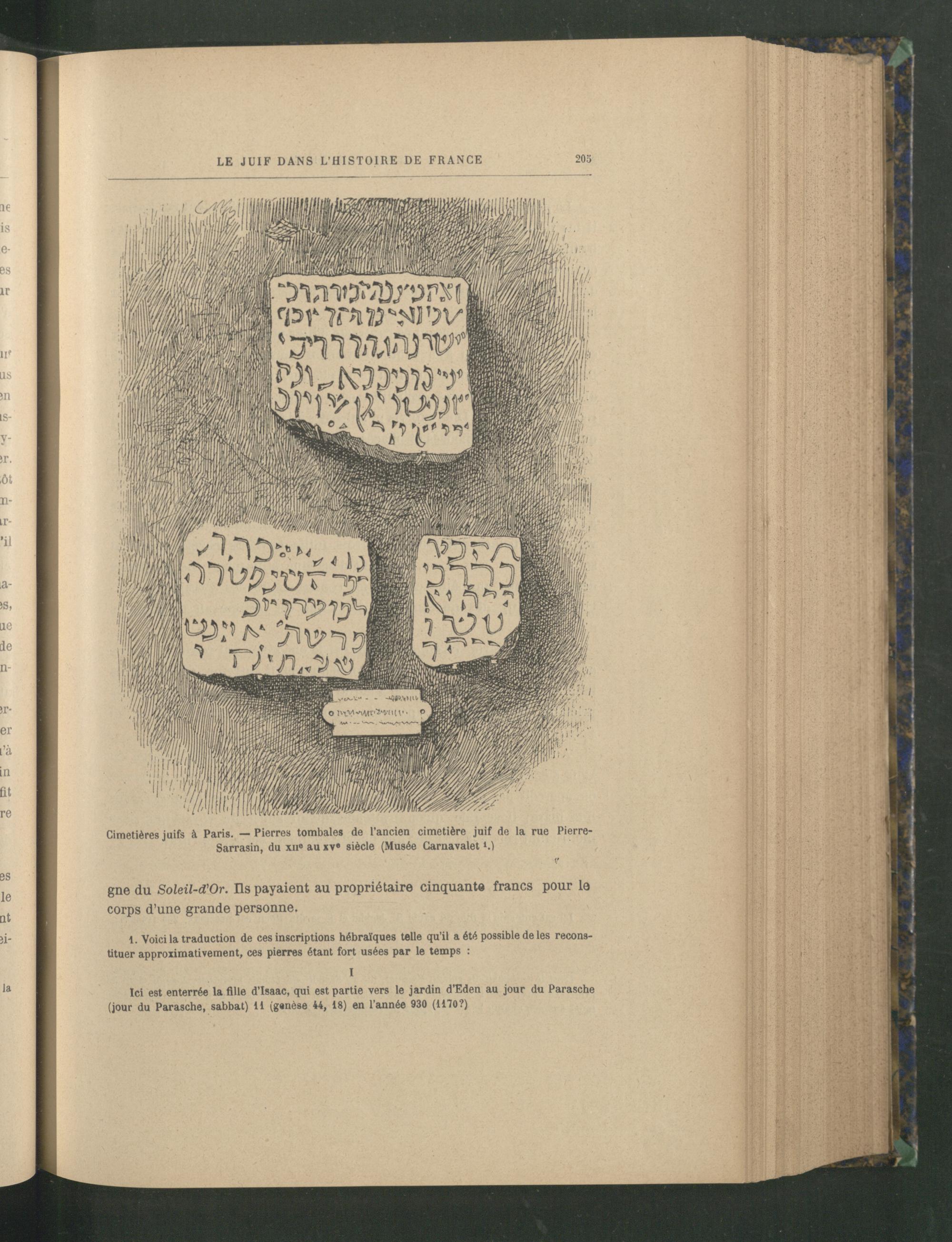 Cimetières juifs à Paris . — Pierres tombales de l’ancien cimetière juif de la rue Pierre- Sarrasin, du xn e au xv e siècle (Musée Carnavalet *.)