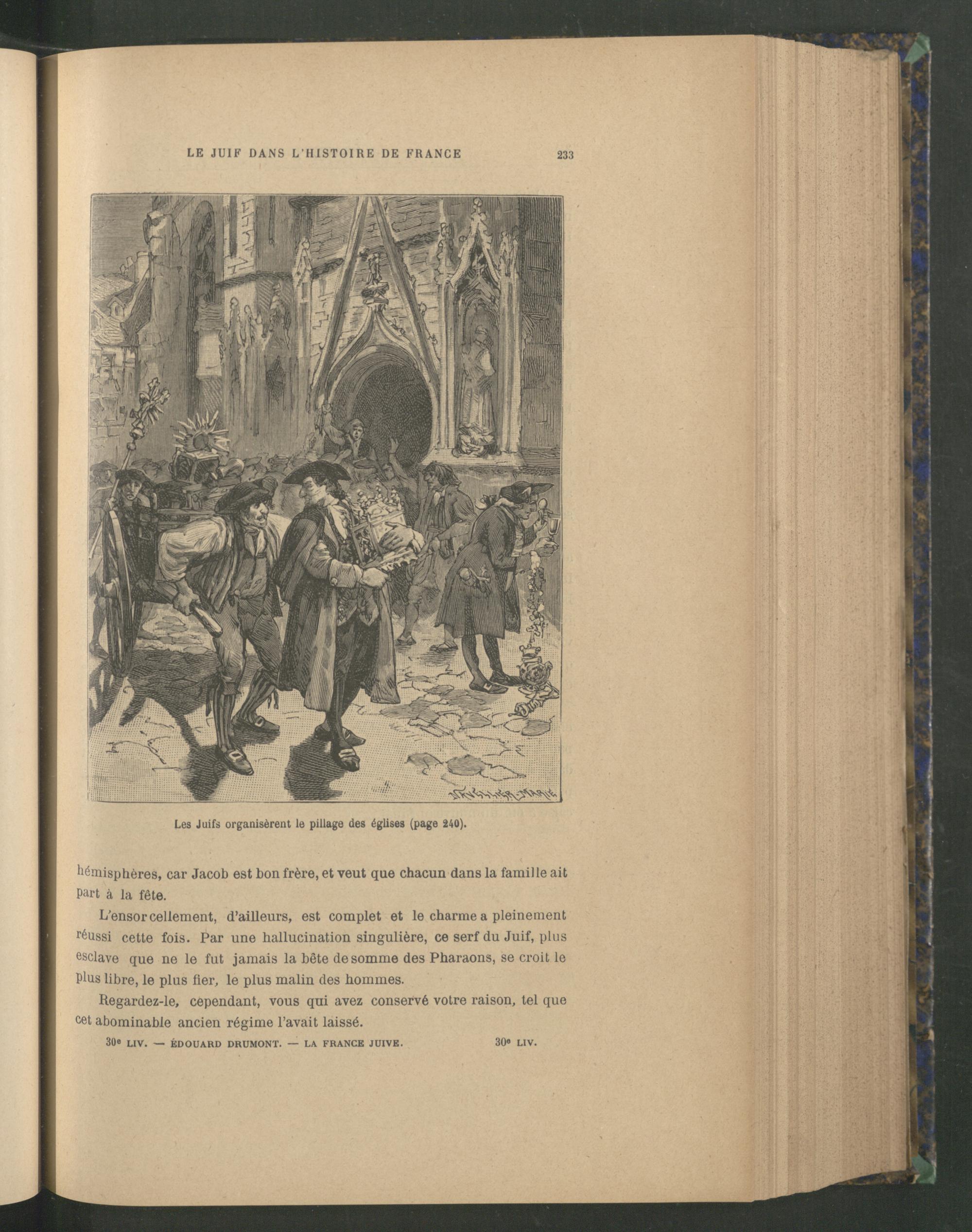 Les Juifs organisèrent le pillage des églises (page 240).