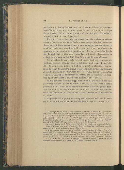 « A côté de ces tribuns pour qui la popularité est une carrière, il existe à l’état d’influence sociale et politique considérable une classe de faiseurs d’affaires, Juifs riches à millions, pour qui la spéculation est une carrière. Ces hommes n’ont pas de religion, pas de patrie, pas de devoirs, et cependant ils ont la puissance que donnent d'immenses capitaux.