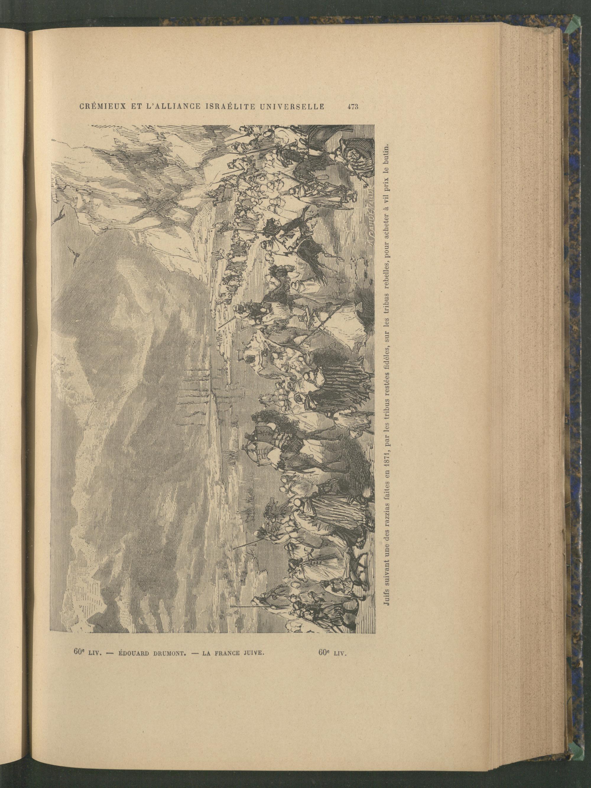60° LIV. - CRÉMIEUX ET L'ALLIANCE ISRAELITE UNIVERSELLE - ÉDOUARD DRUMONT . LA FRANCE JUIVE. 60° LIV. 473 Juifs suivant une des razzias faites en 1871, par les tribus restées fidéles, sur les tribus rebelles, pour acheter à vil prix le butin.
