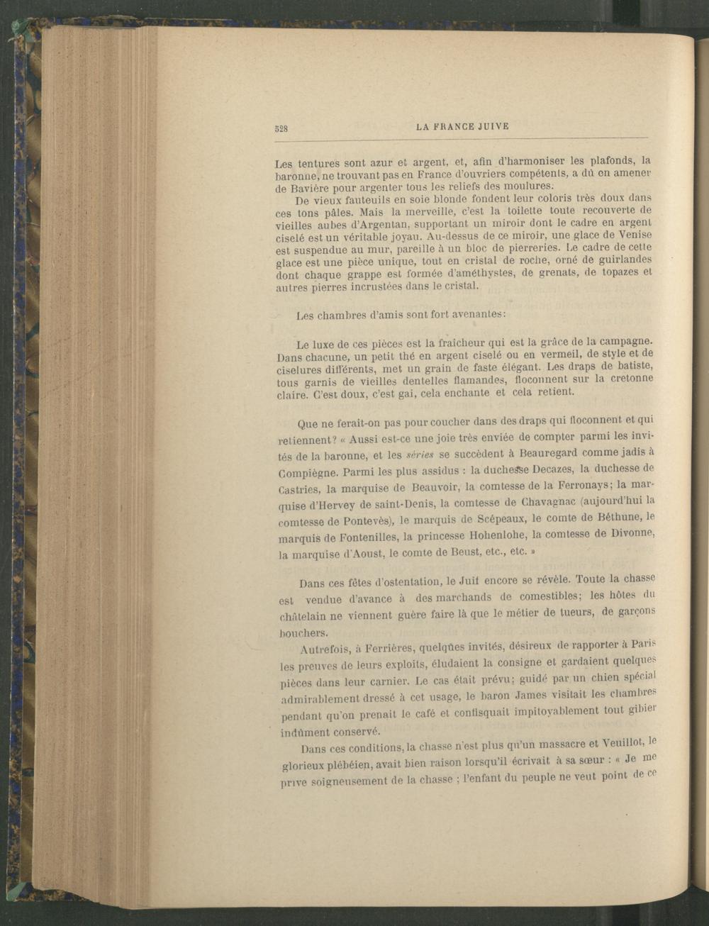 Que ne ferait-on pas pour coucher dans des draps qui floconnent et qui retiennent? « Aussi est-ce une joie très enviée de compter parmi les invités de la baronne, et les séries se succèdent à Beauregard comme jadis à Compïègne . Parmi les plus assidus : la duchesse Decazes , la duchesse de Castries, la marquise de Beauvoir, la comtesse de la Ferronays; la marquise d’Hervey de saint-Denis , la comtesse de Chavagnac (aujourd’hui la comtesse de Pontevès), le marquis de Scépeaux, le comte de Béthune , le marquis de Fontenilles, la princesse Hohenlohe , la comtesse de Divonne , la marquise d'Aoust, le comte de Beust, etc., etc. »