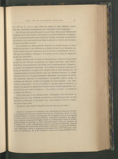 Il ne s’agit pas ici de rastaquouères, d’étrangers. Tout l’armorial de France , toute la vraie noblesse est présente à cette fête sans nom, à cette espèce de prostitution de soi-même qui, dit justement l’Univers, inspire une sorte d’épouvante.