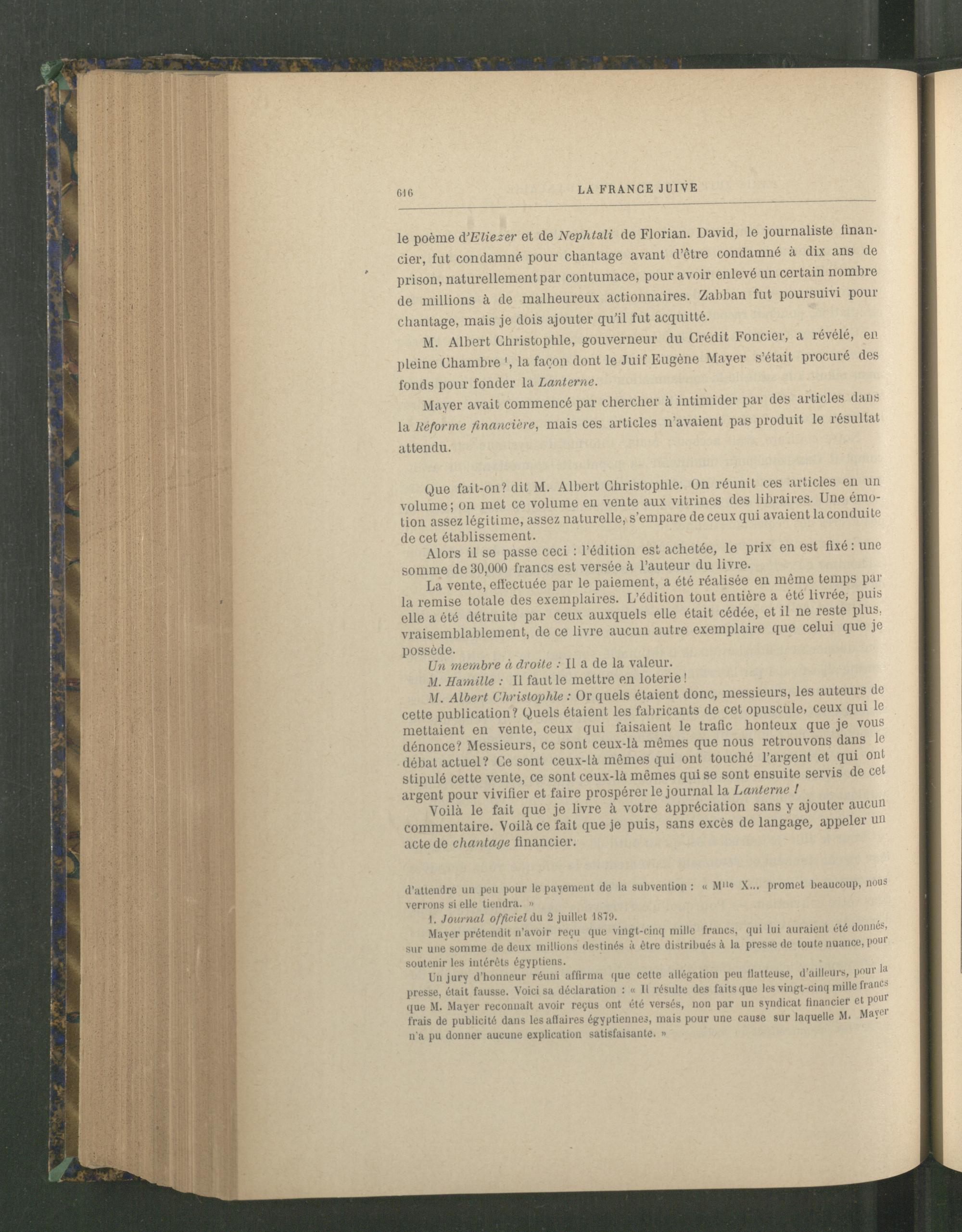 M. Albert Christophle , gouverneur du Crédit Foncier , a révélé, en pleine Chambrela façon dont le Juif Eugène Mayer s’était procuré des fonds pour fonder la Lanterne.