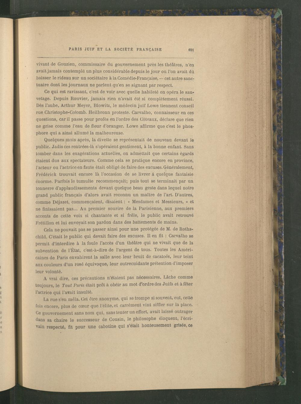 A vrai dire, ces précautions n’étaient pas nécessaires. Lâche comme toujours, le Tout Paris était prêt à obéir au mot d’ordre des Juifs et à fêter l’actrice qui l’avait insulté.