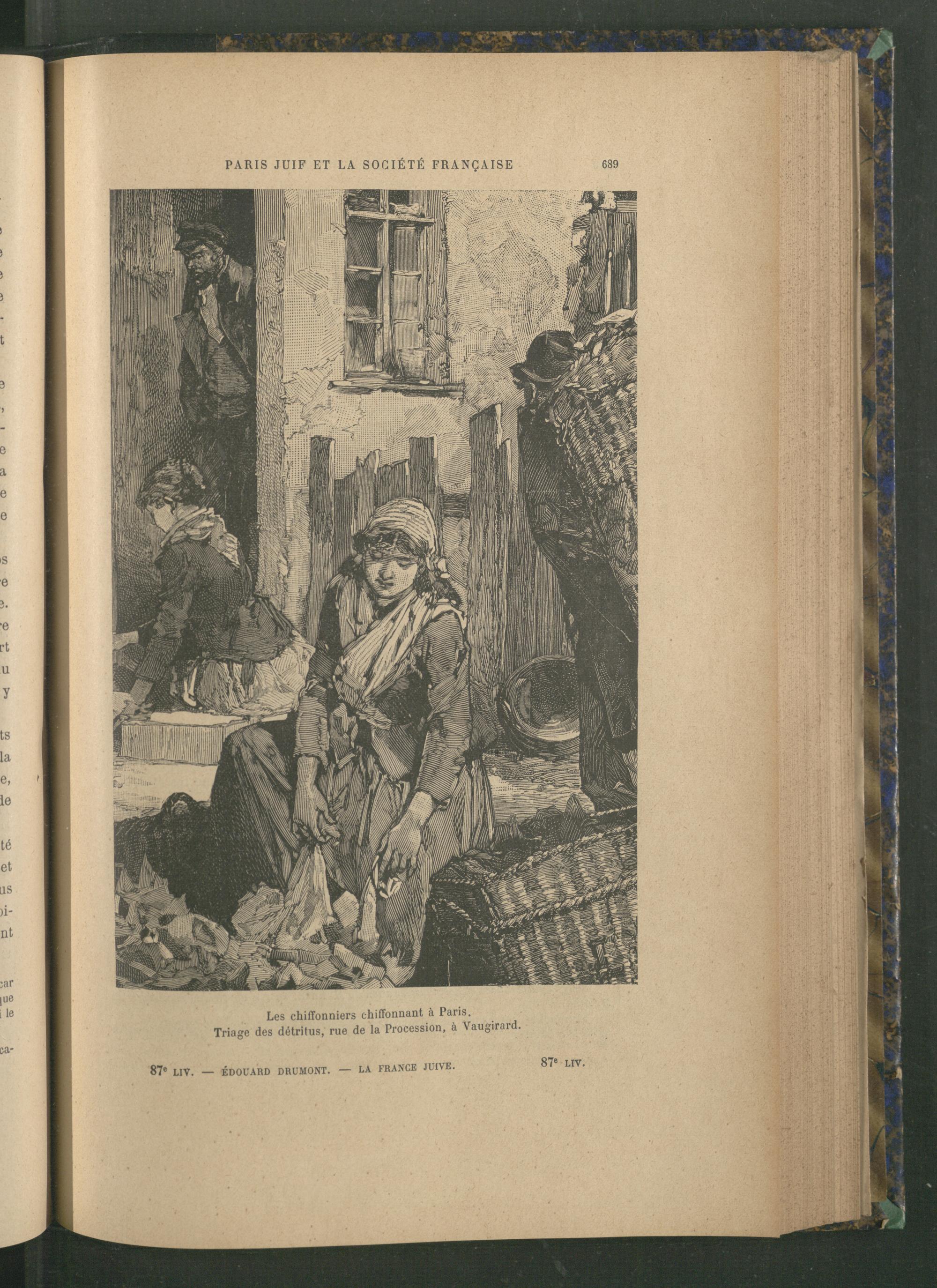 PARIS JUIF ET LA SOCIÉTÉ FRANÇAISE mmm â Les chiffonniers chiffonnant à Paris . Triage des détritus, rue de la Procession, à Vaugiraid, 87 e Lrv, LA FRANCE JUIVE 87 e liv, ÉDOUARD DRUMONT , R'V ■ ' t «P V /.> : m i Jih Km A .*■ •• ’Î5*1 «ÏP ■: -H BS'ta 1
