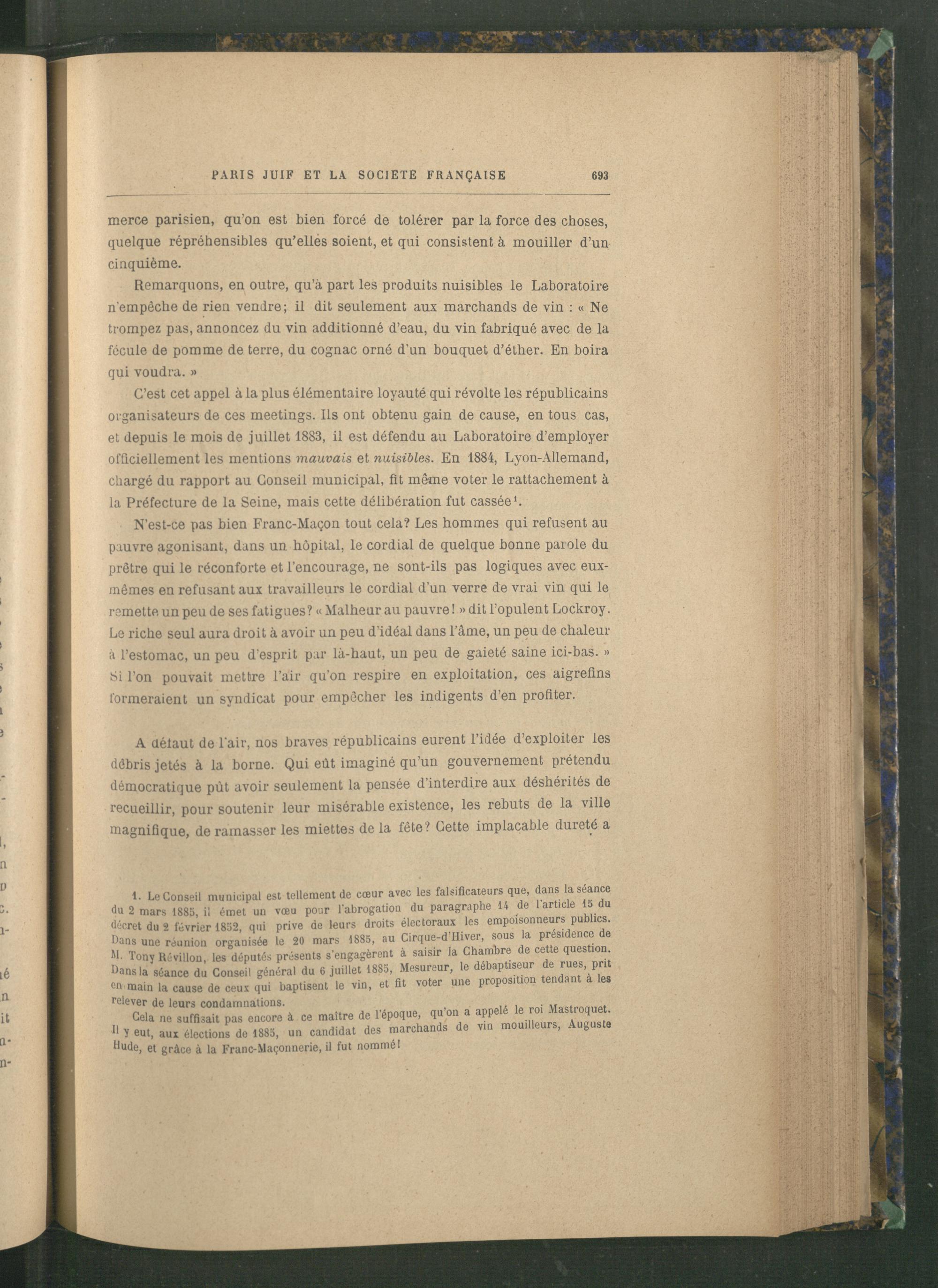 Cela ne suffisait pas encore à ce maître de l’époque, qu’on a appelé le n» Mastroquet. 11 ï eut, aux élections de 1885, un candidat des marchands de vin mouilleurs, Auguste hude, et grâce à la Franc-Maçonnerie , il fut nommé 1
