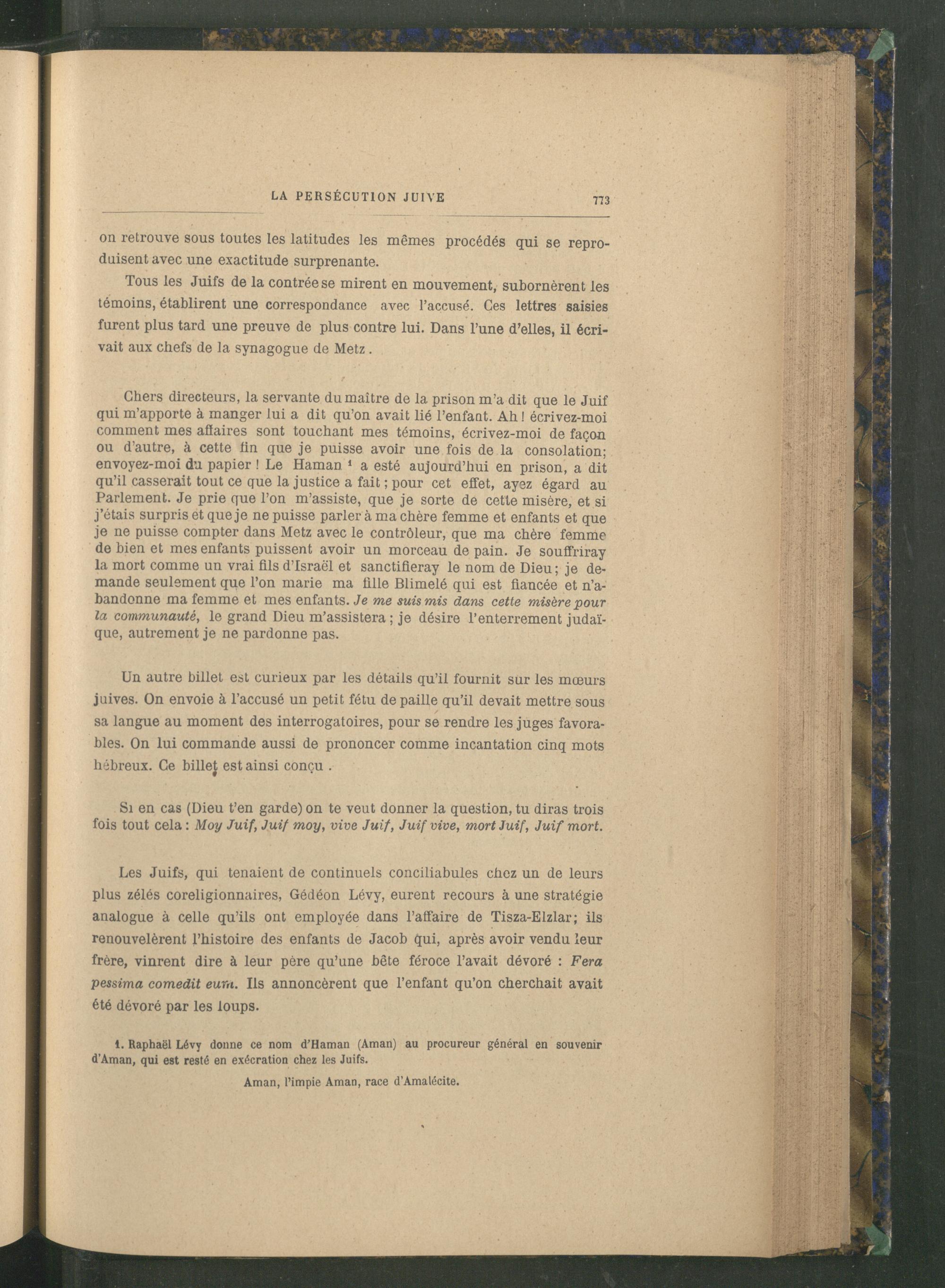 1. Raphaël Lévy donne ce nom d’Haman (Aman) au procureur général en souvenir d’Aman, qui est resté en exécration chez les Juifs.