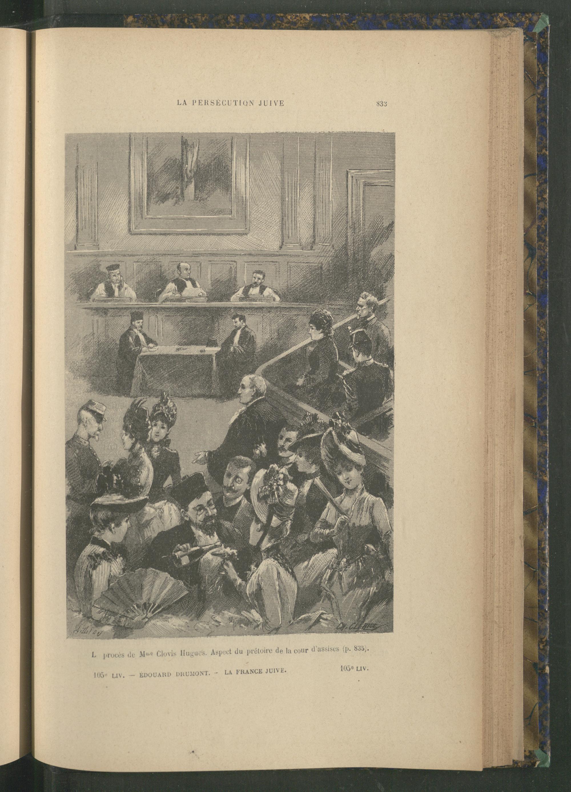 LA PERSÉCUTION JUIVE •/» ^ L procès du M*« Clovis Hugues . Aspect du prétoire de la cour d'assises (p. 83b,. EDOUARD DUUMONT. - LA FRANCE JUIVE. 105 LIV. 105" t.iv _ *■ ' i»Si' ■;i;V 4 • -,