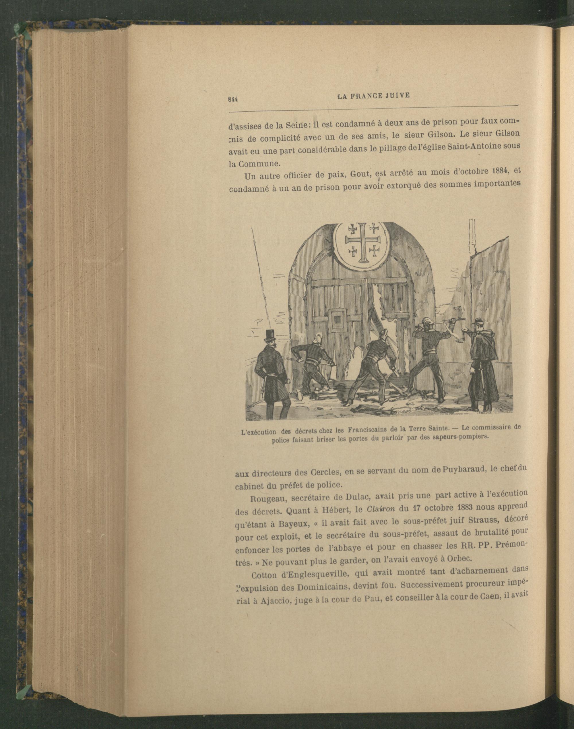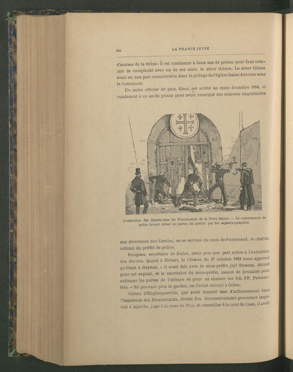 L'exécution des décrets chez les Franciscains de la Terre Sainte. — Le commissaire de police faisant briser les portes du parloir par des sapeurs-pompiers.