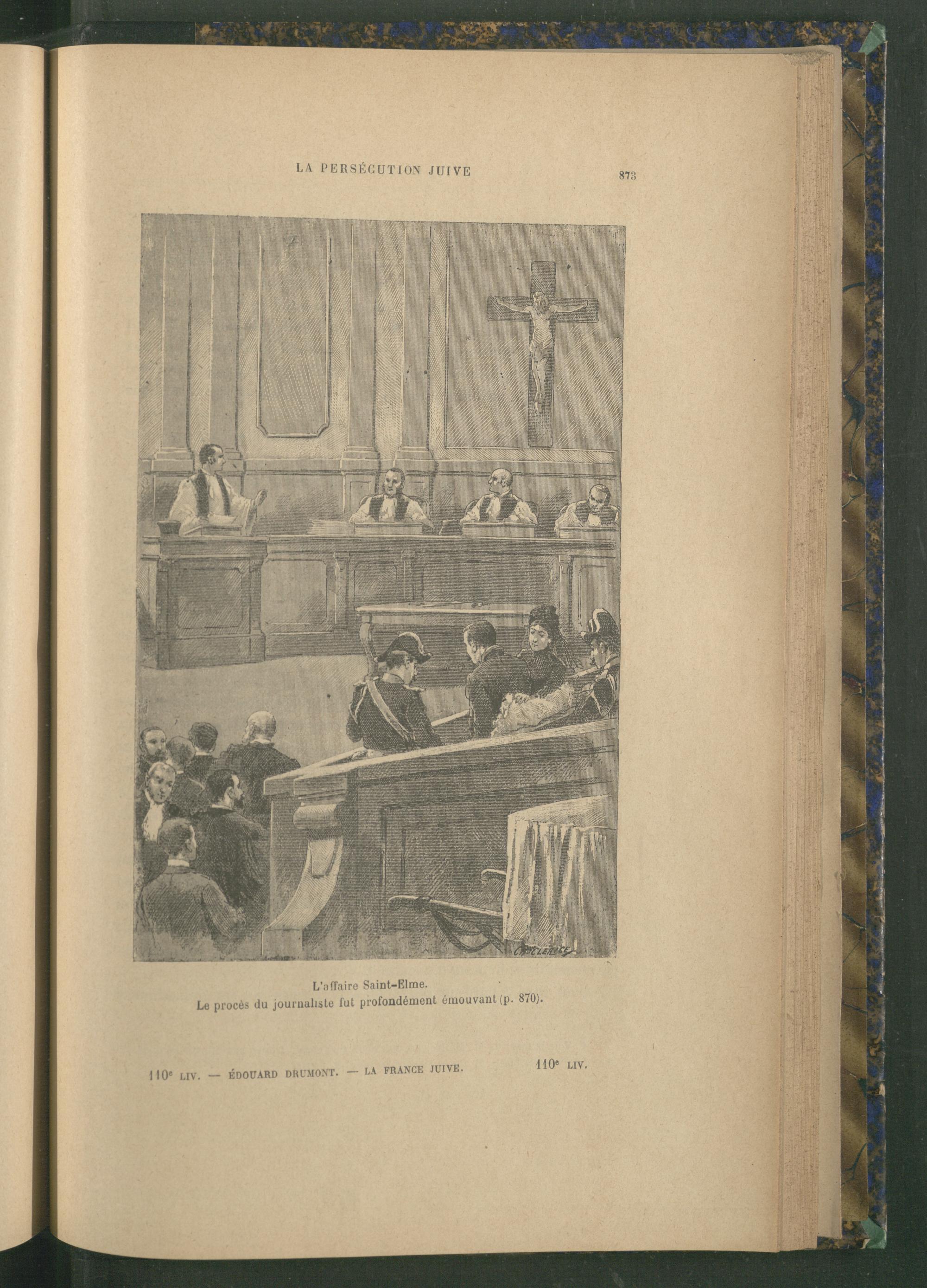LA PERSECUTION JUIVE 873 L'affaire Saint- Elme. Le procès du journaliste fut profondément émouvant( p. 870). 110 LIV. ÉDOUARD DRUMONT . - - LA FRANCE JUIVE. 110° LIV.