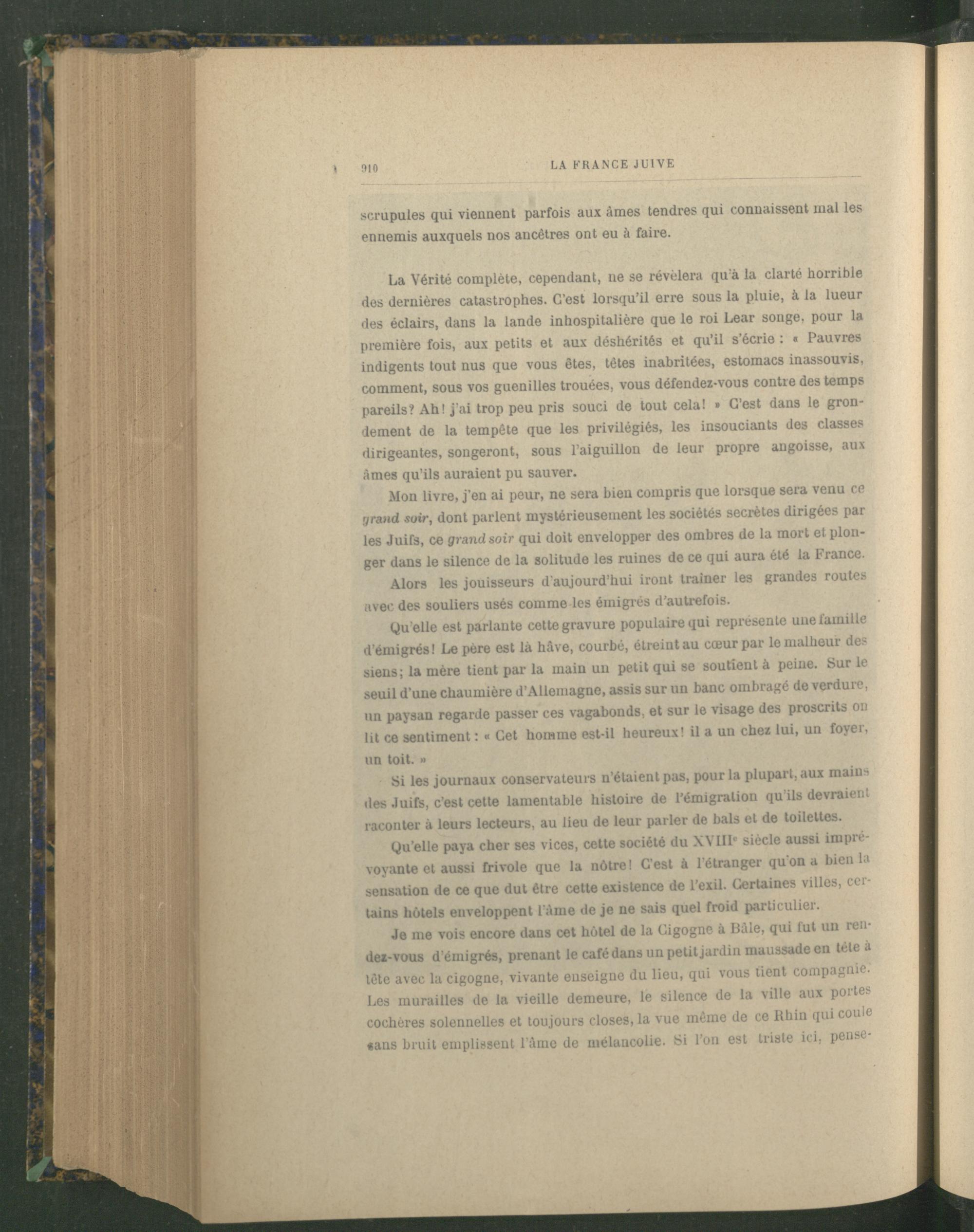 Si les journaux conservateurs n’étaient pas, pour la plupart, aux maius des Juifs, c’est cette lamentable histoire de l’émigration qu’ils devraient raconter à leurs lecteurs, au lieu de leur parler de bals et de toilettes.