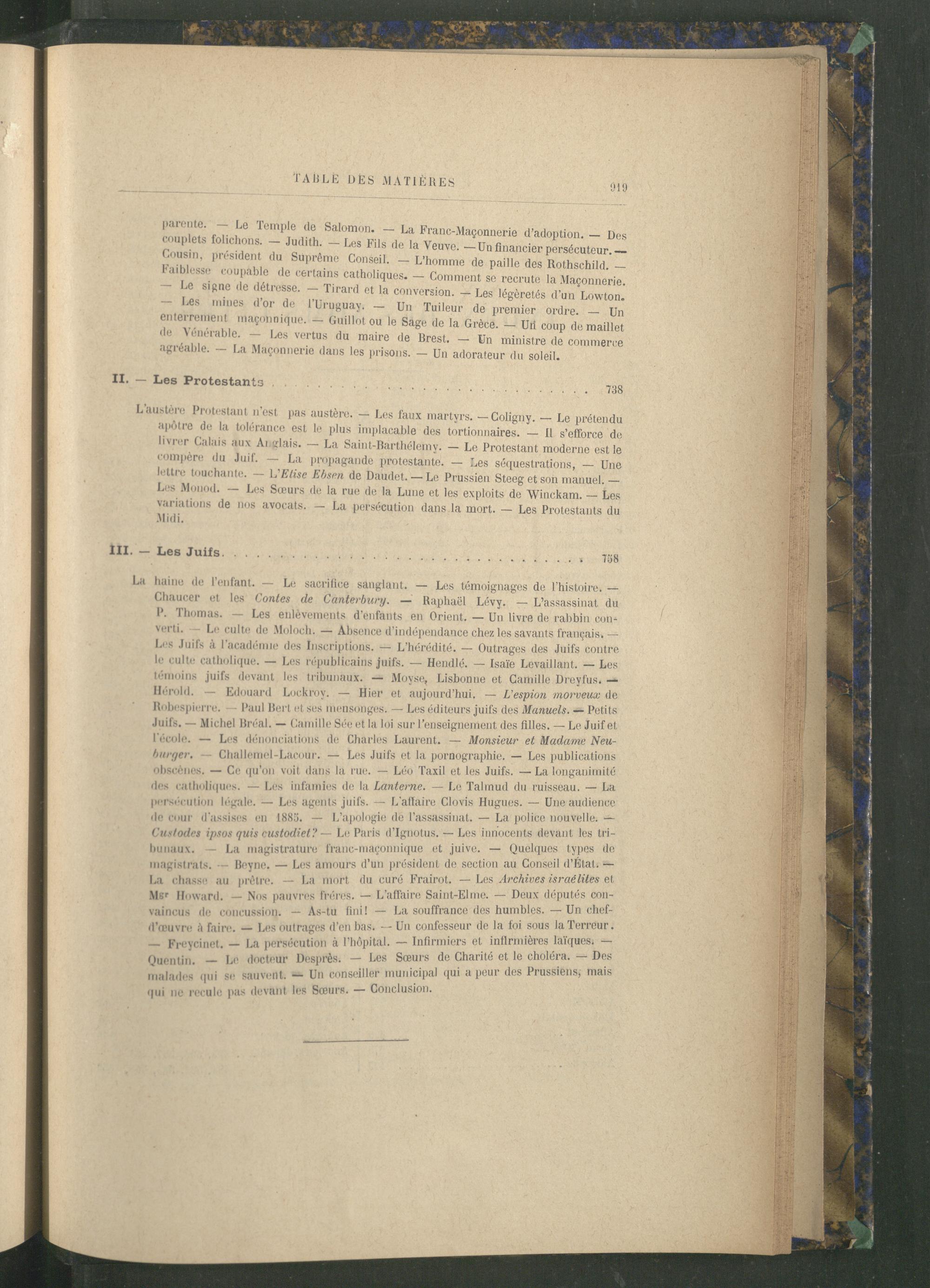 apôtre de la tolérance est le plus implacable des tortionnaires. livrer Calais aux Anglais. compère du Juif. lettre touchante. L'Etise Ebsen de Daudet.- Le Prussien Steeg et son manuel. Les Monod. Les Sœurs de la rue de la Lune et les exploits de Winckam. Les variations de nos avocats. La persécution dans la mort. Les Protestants du Midi.