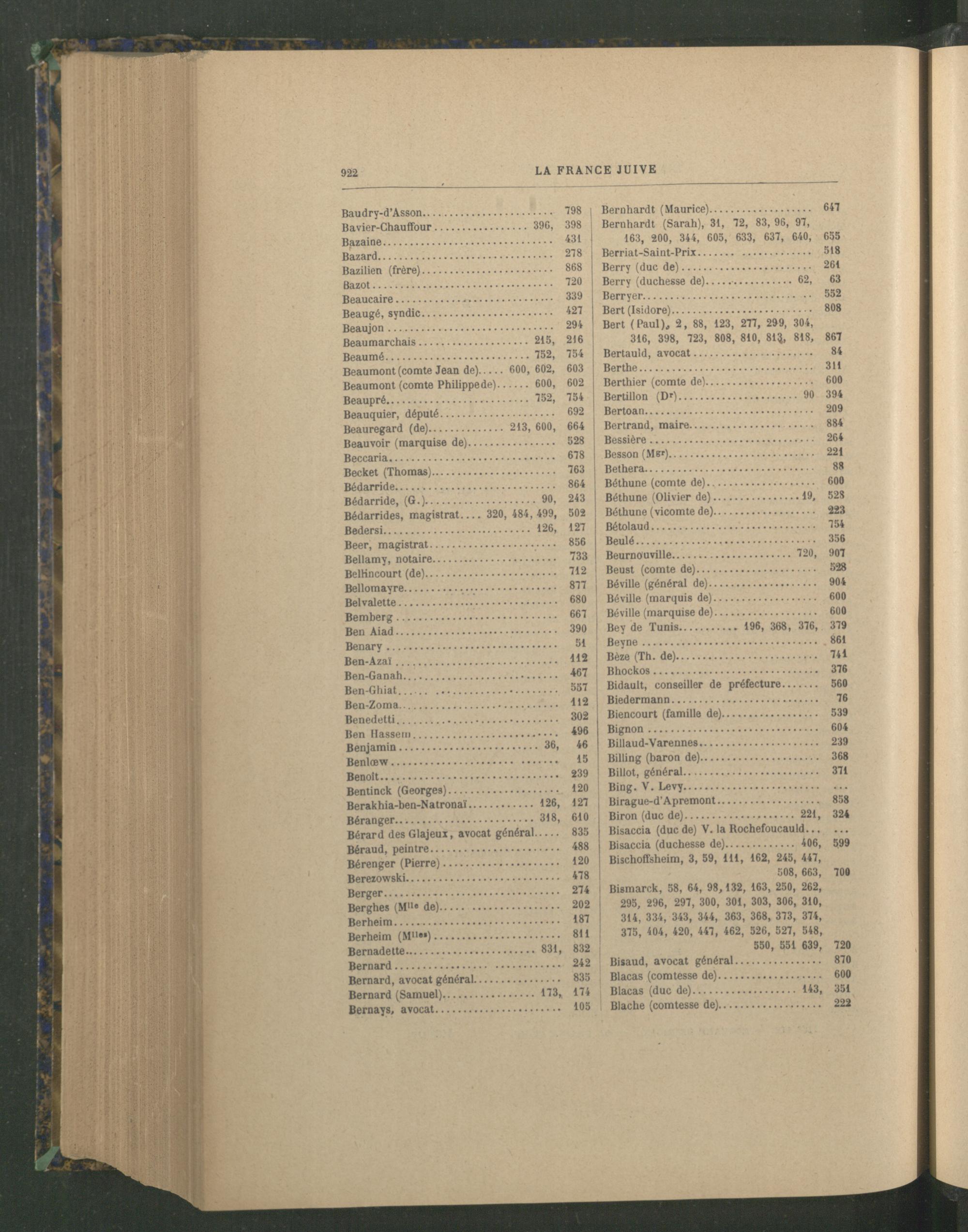 Bisaccia( duc de) V. la Rochefoucauld... Bisaccia( duchesse de)......... 406, 599 Bischoffsheim, 3, 59, 111, 162, 245, 447,