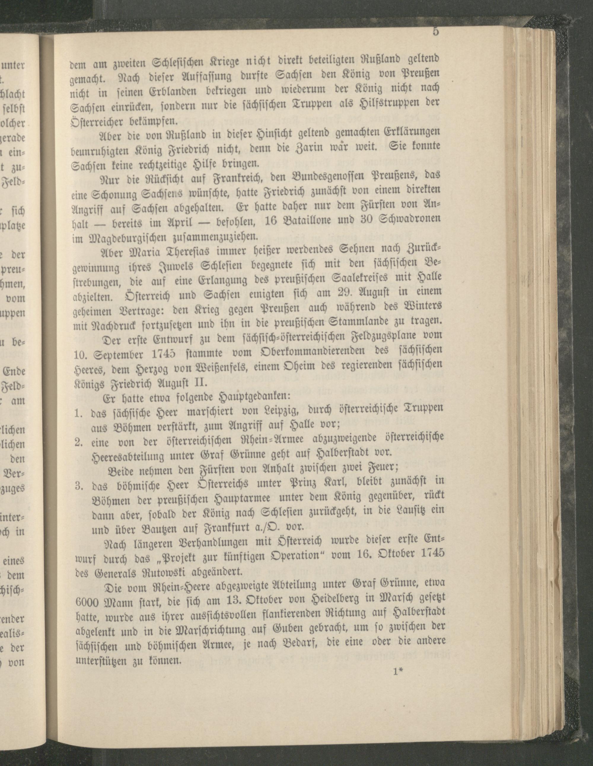 Aber Maria Thereſias immer heißer werdendes Sehnen nach Zurückgewinnung ihres Juwels Schleſien begegnete ſich mit den ſächſiſchen Beſtrebungen, die auf eine Erlangung des preußiſchen Saalekreiſes mit Halle abzielten. Sſterreich und Sachſen einigten ſich am 29. Auguſt in einem geheimen Vertrage: den Krieg gegen Preußen auch während des Winters mit Nachdruck fortzuſetzen und ihn in die preußiſchen Stammlande zu tragen.