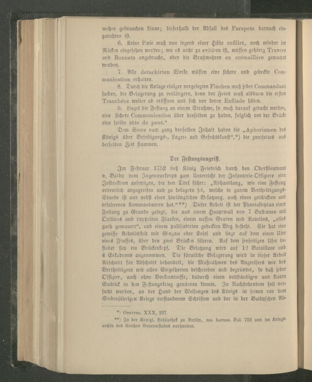 Dem Sinne nach ganz denselben Inhalt haben die„ Aphorismen des Königs über Befestigungs-, Lager- und Gefechtskunst",*) die zweifellos aus derselben Zeit stammen.
