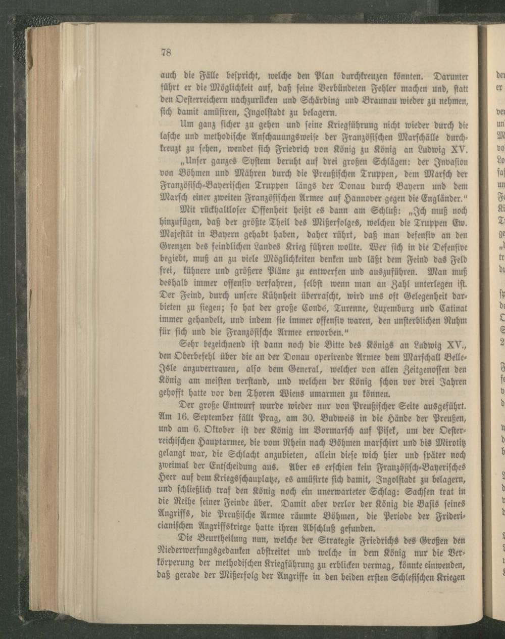 Sehr bezeichnend iſt dann noch die Bitte des Königs an Ludwig XV. , den Oberbefehl über die an der Donau operirende Armee dem Marſchall BelleIsle anzuvertrauen, alſo dem General, welcher von allen Zeitgenoſſen den König am meiſten verſtand, und welchen der König ſchon vor drei Jahren gehofft hatte vor den Thoren Wiens umarmen zu können.