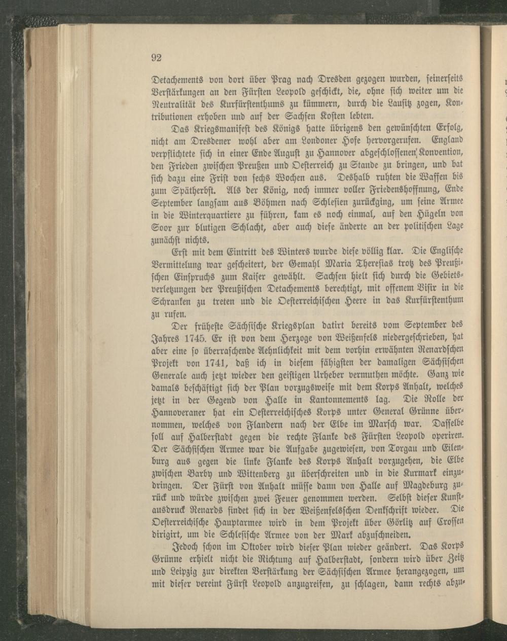 Jedoch ſchon im Oktober wird dieſer Plan wieder geändert. Das Korps Grünne erhielt nicht die Richtung auf Halberſtadt , ſondern wird über Zeitz und Leipzig zur direkten Verſtärkung der Sächſiſchen Armee herangezogen, um mit dieſer vereint Fürſt Leopold anzugreifen, zu ſchlagen, dann rechts abzu
