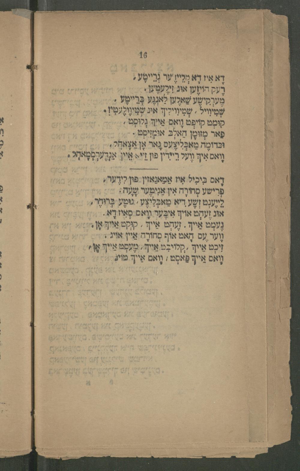 אוּן זֶערְט אוֹיךְ אִיבֶּעֶר וָואס סְאִיז דָא. גֶעמְט אֵייךְ. זֶעֶרְט אֵייךְ קוּקְט אַייךְ אָן. וֶוער עס הָאט אוֹף סְחוֹרָה אֵיין אויג. זִיכְט אֵייךְ קְלוֹיגְט אֵייךְ מֶעסְט אֵייךְ וואס אייךְ פַאסְט: וואס אייך טוֹיג