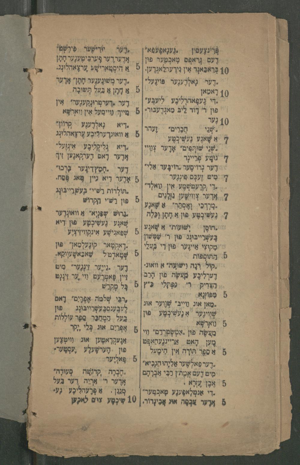 מִיט דֶעם אמת'ן רַבִּי אַבְרָהָם חֶבְרָה קְדוֹשָׁה סְעוּדָה" 5 אֶבֶן עֶזְרָא אָדער ר' אַרְיָה דֶער בעל די אַנטְלָאפֶענֶע טאכטער" מנגן. אַ פְרֶעהליכע גע• . 5 אָדער עַכְסָה אוּן אָביגדור. 10 שיכטע צום לאכען