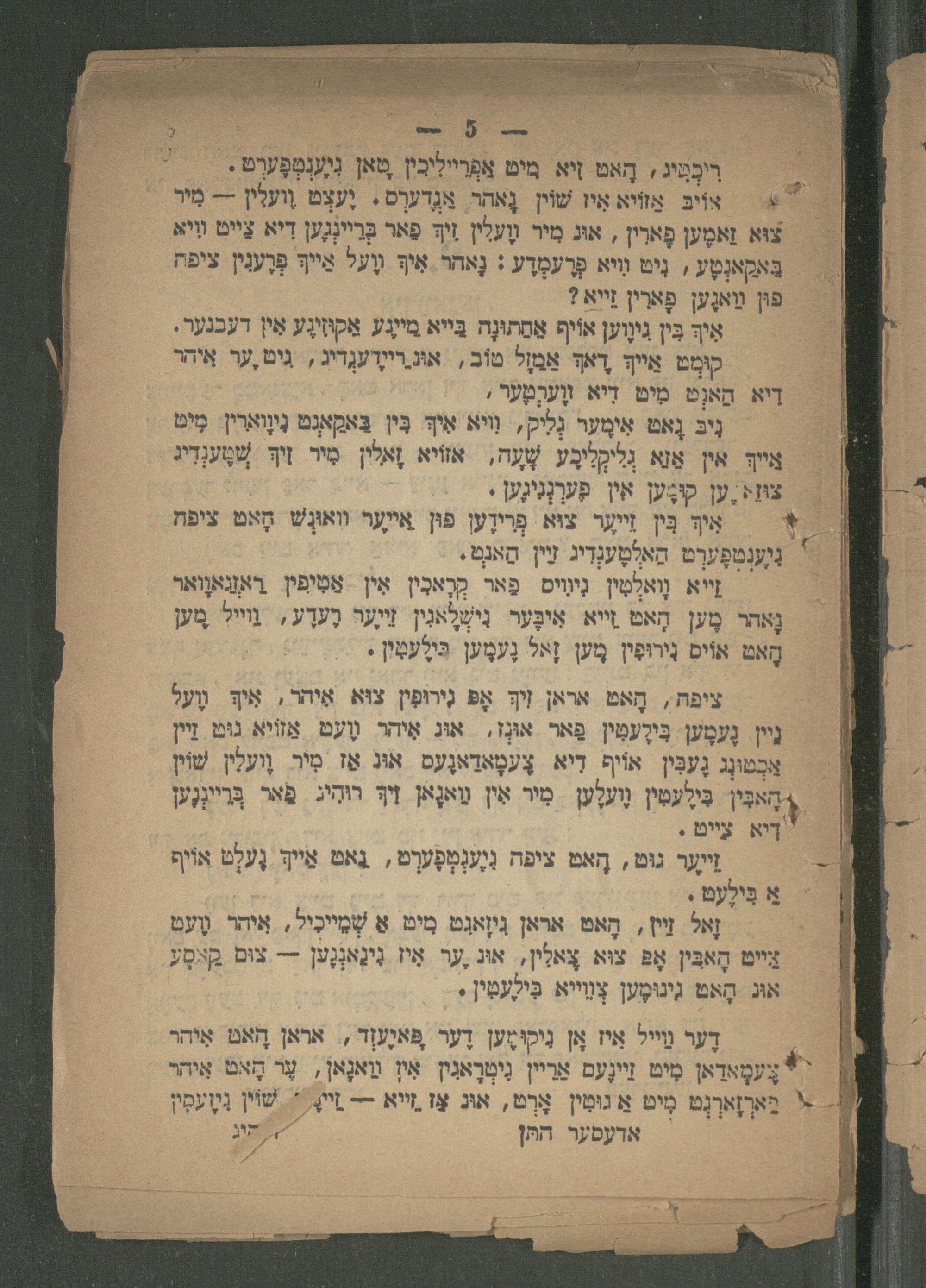 ציפח, הָאט אראן זיךְ אָפּ גִירוּפִין צוּא אִיהו, אִיך וֶעל גיין נֶעמֶען בִּירֶעמִין פַּאר אוּנָז, אוג אֵיהר מֶעט אַזוֹיא גוּט זַיין ַכְפוּנָג גֶעבִּין אוֹיף דִיא צֶעמָאדַאנֶעס אוּג אַז סִּיר. וֶועלין שׁוֹין {ְהָאנִי ִּילֶּעמִין נֶועלֶען- מִיר אין מַאנָאן זי רוּהָיג. פַאר בְּריינְֶען דיא צייט. זֵייער גוט, הָאט ציפה נִוֶענְטְפֶערְט, גאט אֵיי גֶעלְט אוֹיף א בִּילֶעט. זָאל. זי, הָאט אראן גִיזָאגְט מים אַ שְׁמַייכִיל, אֵיהֶר נֶעט ציים הָאבִּין אָפּ צוא צָאלִין, אונ ער אִיז גִינַאנְגֶען= צוּם קאסֶע אוּג הָאט גִינוּמֶען צְווִייא בִּילֶעמִין.