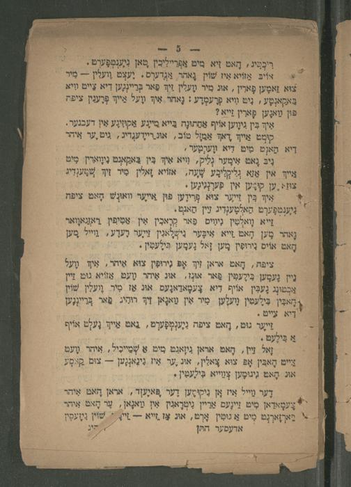 אִיךְ בִּין גיווען אוֹיף אַחַתוּנָה בַּייא מיעָע אַקוִינֶע אִין דעכנער. קוּמְט אַייךְ דַאךְ אַמזל טוֹב , אוּג.רייָדֶענדיג, גִיט.ער איהר דִיא הַאנְט מִים דִיא וװֶערְטֶער, נִיבּ נָאט אִימֶער נָליק, וִויא אִיך. בִּין בַּאקַאגְט נִיוָוארִין. מִּיט איין אין אַזֹא גְלִקְִיכֶע שָׁעָה, אזֹיא זָאלין סִיר זִיךְּ שְֶׁענְדִיג צוּזז.ען קוּנֶען אין פֶערְנְגִיגֶען. : אִיך בִּין זייער צוא פְרִיזֶען פֿוּן איער וואוּנְשׁ הָאט ציפח ננֶענְטפֶערְט הַאלְטֶענְדִיג זײין הַאגְט. = זייא נָאלְטִין גִיוִיס פַאר קְרָאכִין אַטִיפִין רַאזַאוָואר נָאר מֶען הָאט זייא אִיבֶּער נִישְׁלָאגִין זיר בֶעדֶע, וַוייל מֶען הָאט אוֹיס נִירוּפִין מֶען זָאל נֶעמֶען בִּיְלֶעמִין.