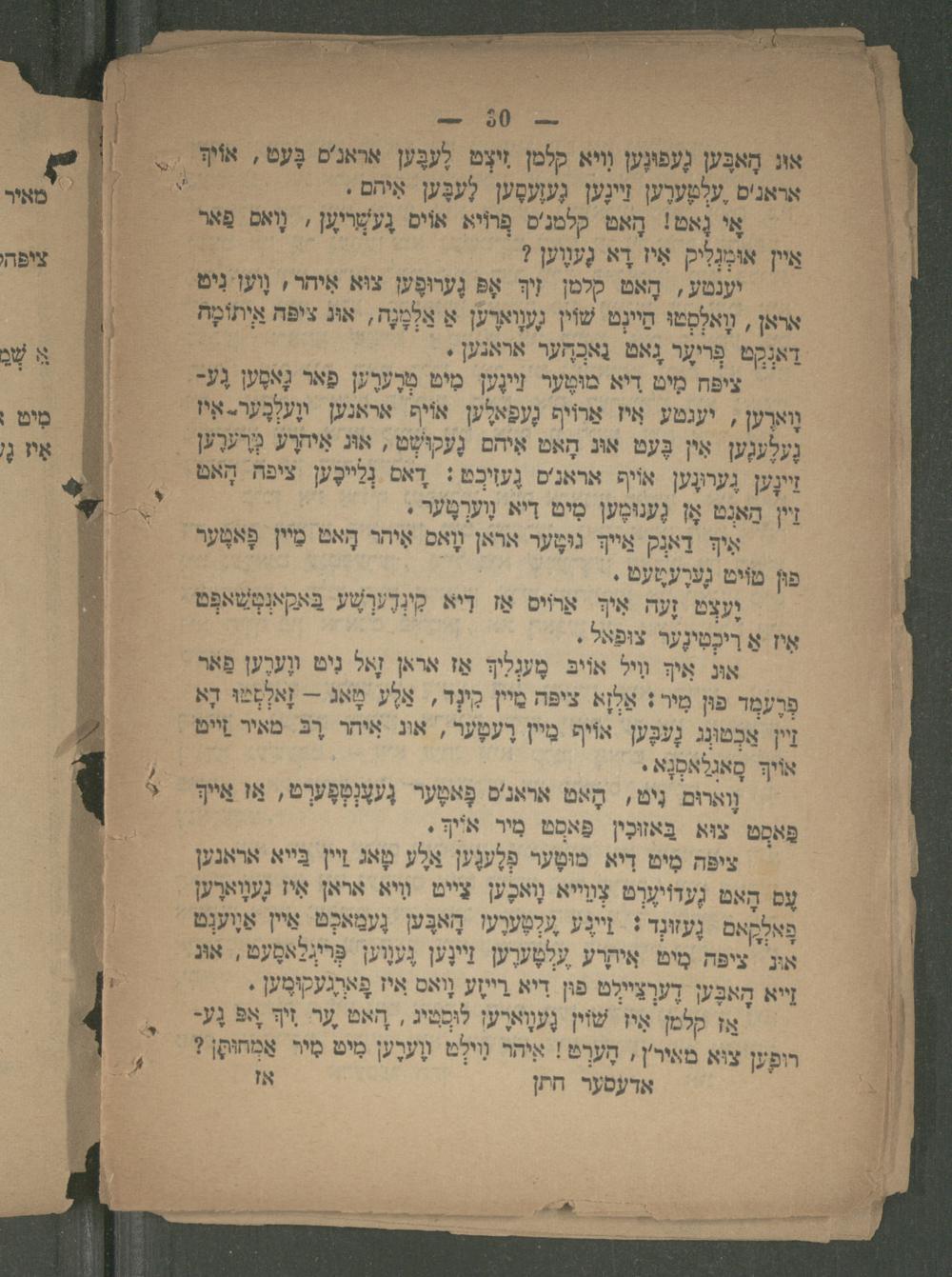 אוג אִיךְ װִיל אוֹיבּ מֶענְלִיךְ אַז אראן זָאל נִיט ווֶערֶען פַּאר פְרֶעמֶר פוּן מִיר 1 אַלְזָא ציפּה מיין קֵינֶד, אַלֶע מָאגּ-- זָאנְמְטּוּ דָא זיין אַבְטונג נֶעבֶּען אוֹיף מֵיין רֶעטֶער ,' איחר{3ּ מאיר זַייט אוֹיךְ חָאגְלַאסְנְא.