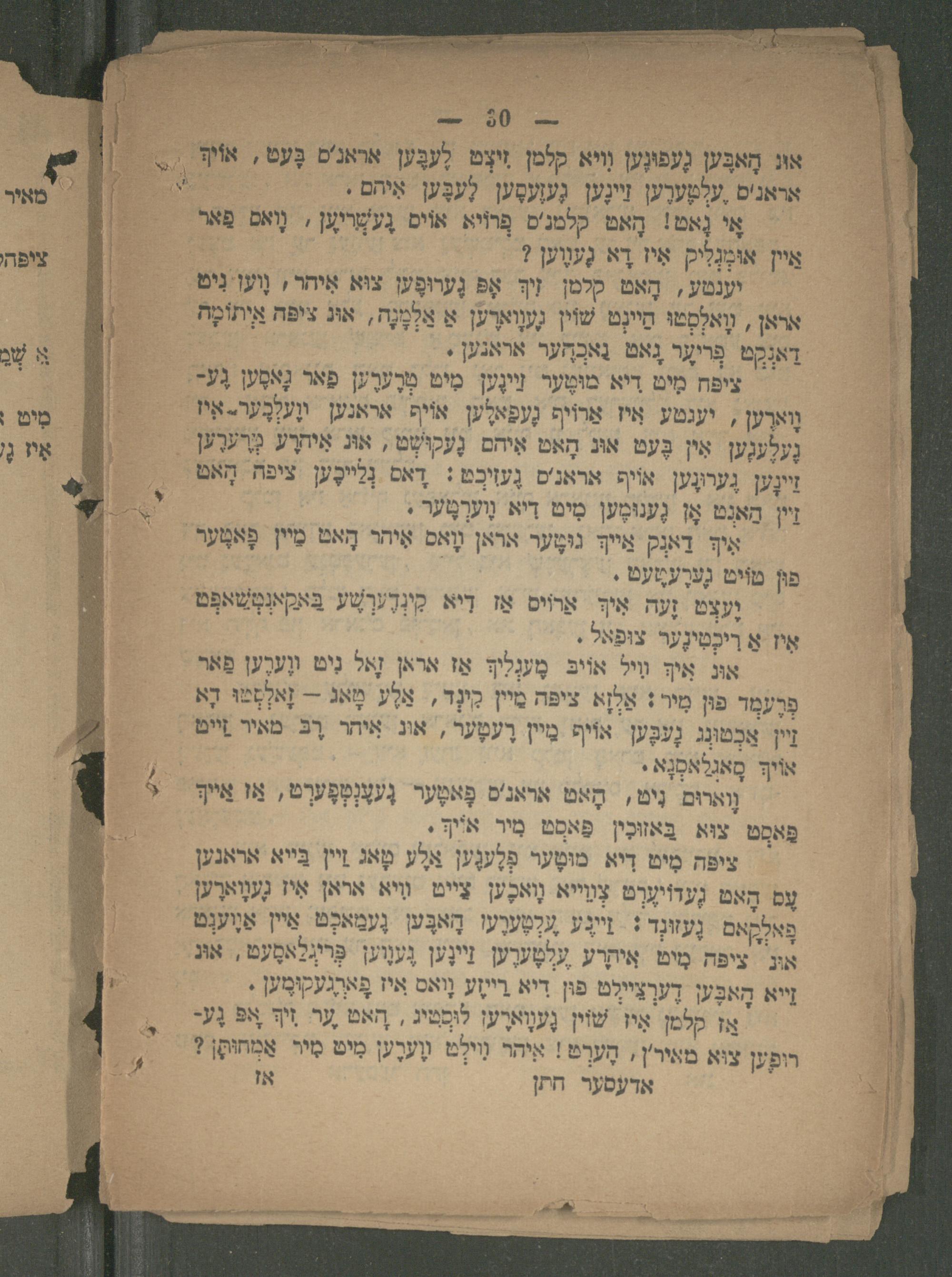 אוג הָאבֶּען גֶעפוּנֶען וִוייא קלמן זיצְט לֶעבֶּען אראנ'ס בֶּעט, אוֹיף. אראנ'ס עלְטֶערֶען זַיינֶען גֶעזֶעסֶען לֶעבֶּען אֵיהם. - אָי נָאט! הָאט קלמנ'ם פְרוֹיא אוֹיס גֶעשְׁריען, נָואם פַאר