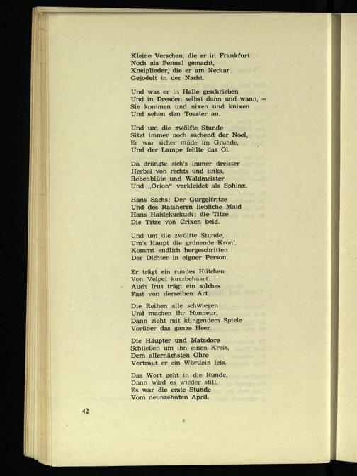 Und was er in Halle geschrieben Und in Dresden selbst dann und wann Sie kommen und nixen und knixen Und sehen den Toaster an.