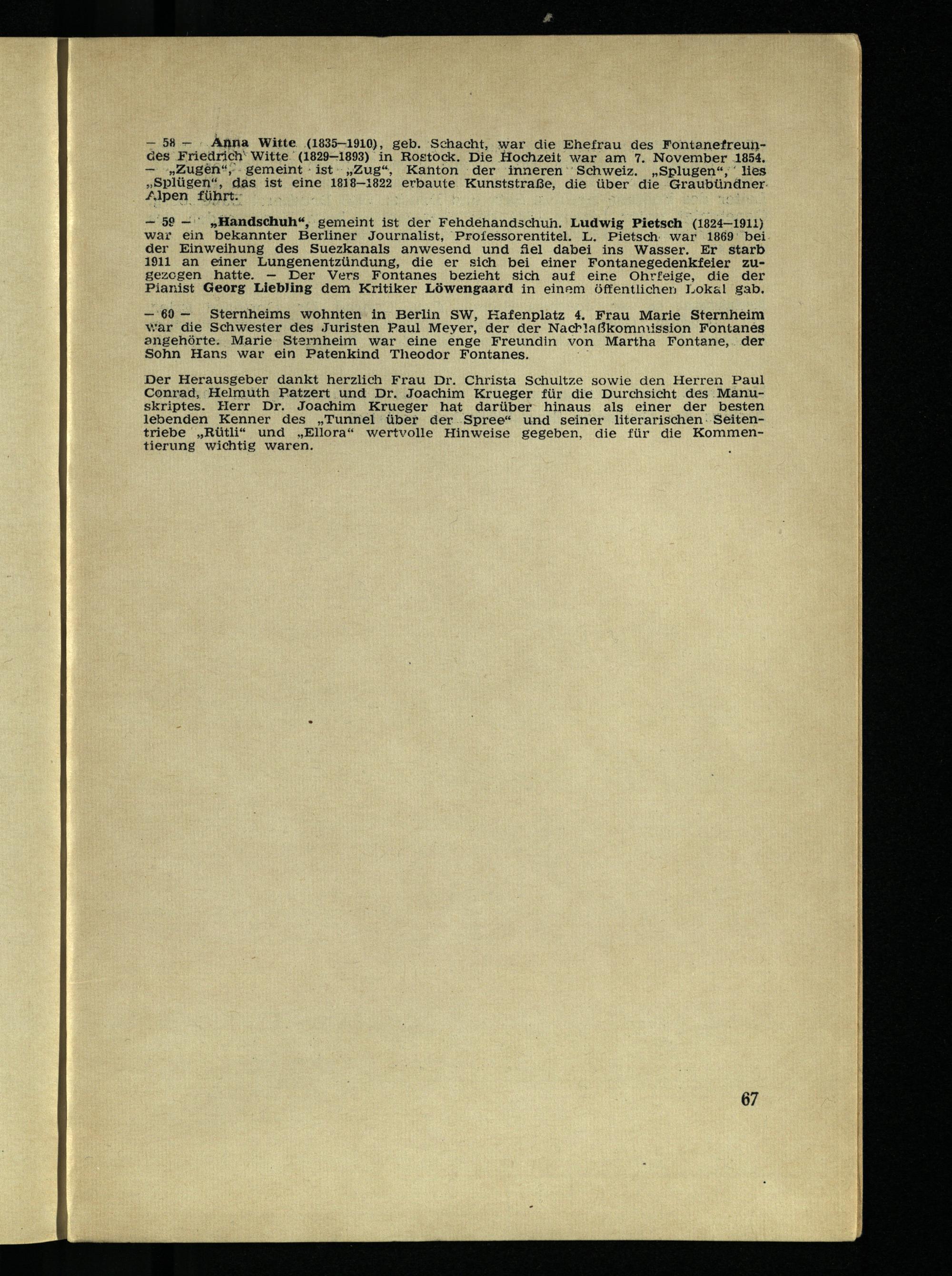 Der Herausgeber dankt herzlich Frau Dr. Christa Schultze sowie den Herren Paul Conrad, Helmuth Patzert und Dr. Joachim Krueger für die Durchsicht des Manuskriptes. Herr Dr. Joachim Krueger hat darüber hinaus als einer der besten lebenden Kenner des „Tunnel über der Spree“ und seiner literarischen Seitentriebe „Rütli“ und „Ellora“ wertvolle Hinweise gegeben, die für die Kommentierung wichtig waren.