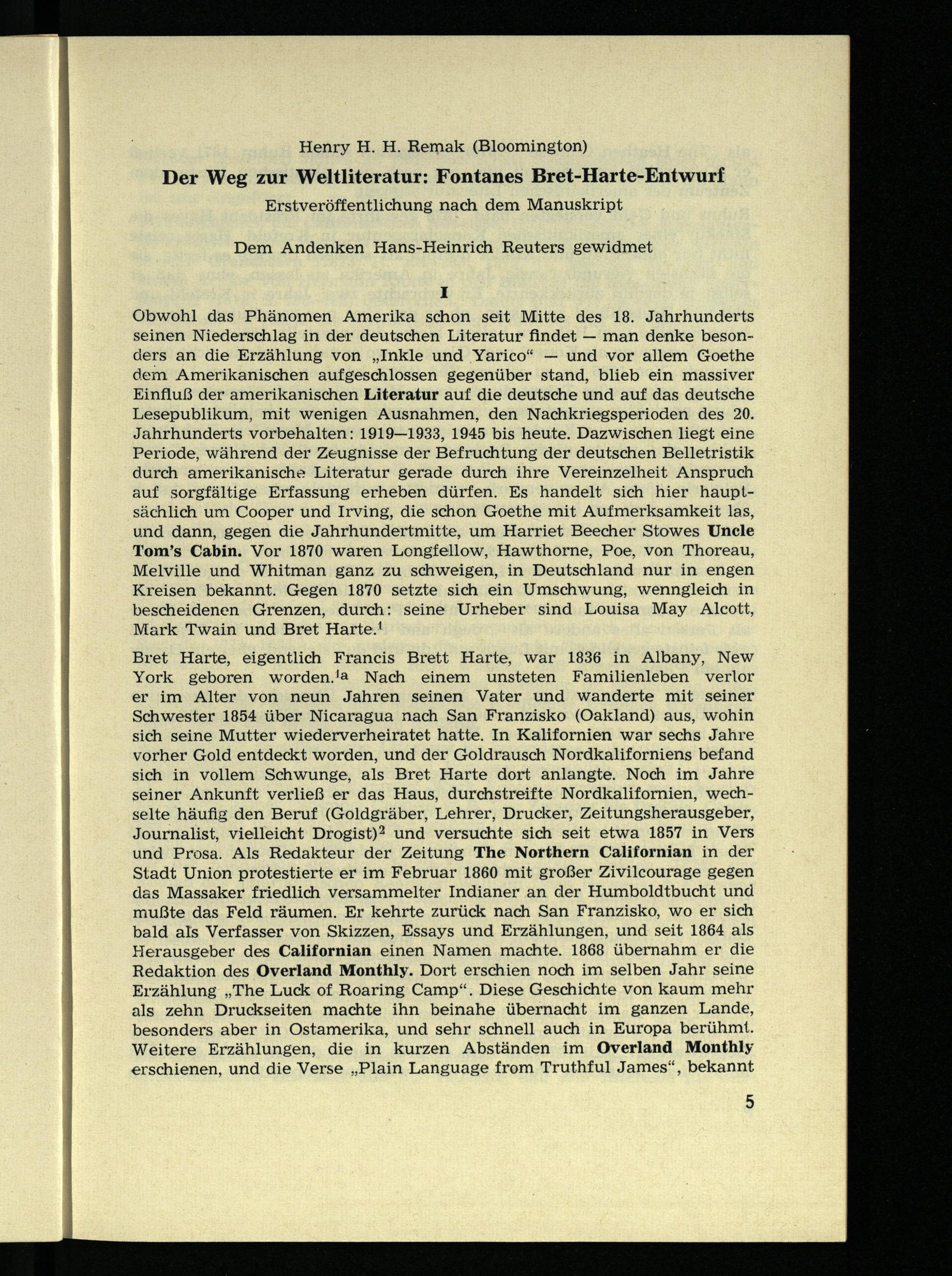 Der Weg zur Weltliteratur: Fontanes Bret-Harte-Entwurf