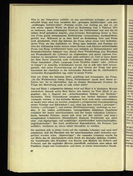 Und am Ende des Schemas steht, gradlinig und konsequent, die Frage, „ob die Weltliteratur etwas Neues, Fördersames“ durch Bret Harte erhalten hat. Ist es überhörbar, daß an diesem Wendepunkt Fontane die Frage der Bewertung auch an sich selbst stellt?