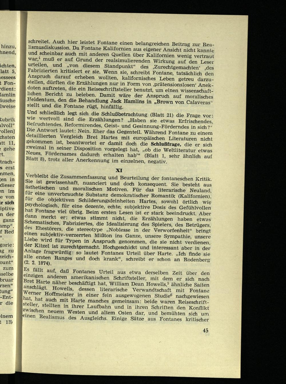 Es fällt auf, daß Fontanes Urteil aus etwa derselben Zeit über den einzigen anderen amerikanischen Schriftsteller, mit dem er sich nach Bret Harte näher beschäftigt hat, William Dean Howells, 5 ähnliche Saiten anschlägt. Howells, dessen literarische Verwandtschaft mit Fontane Werner Hoffmeister in einer fein ausgewogenen Studie 6 nachgewiesen hat, hat auch mit Harte manches gemeinsam: beide waren Reiseschriftsteller, stellten in ihrer Laufbahn und in ihren Schriften den Konflikt zwischen neuem Westen und altem Osten dar, und bemühten sich um einen Realismus des Ausgleichs. Einige Sätze aus Fontanes kritischer