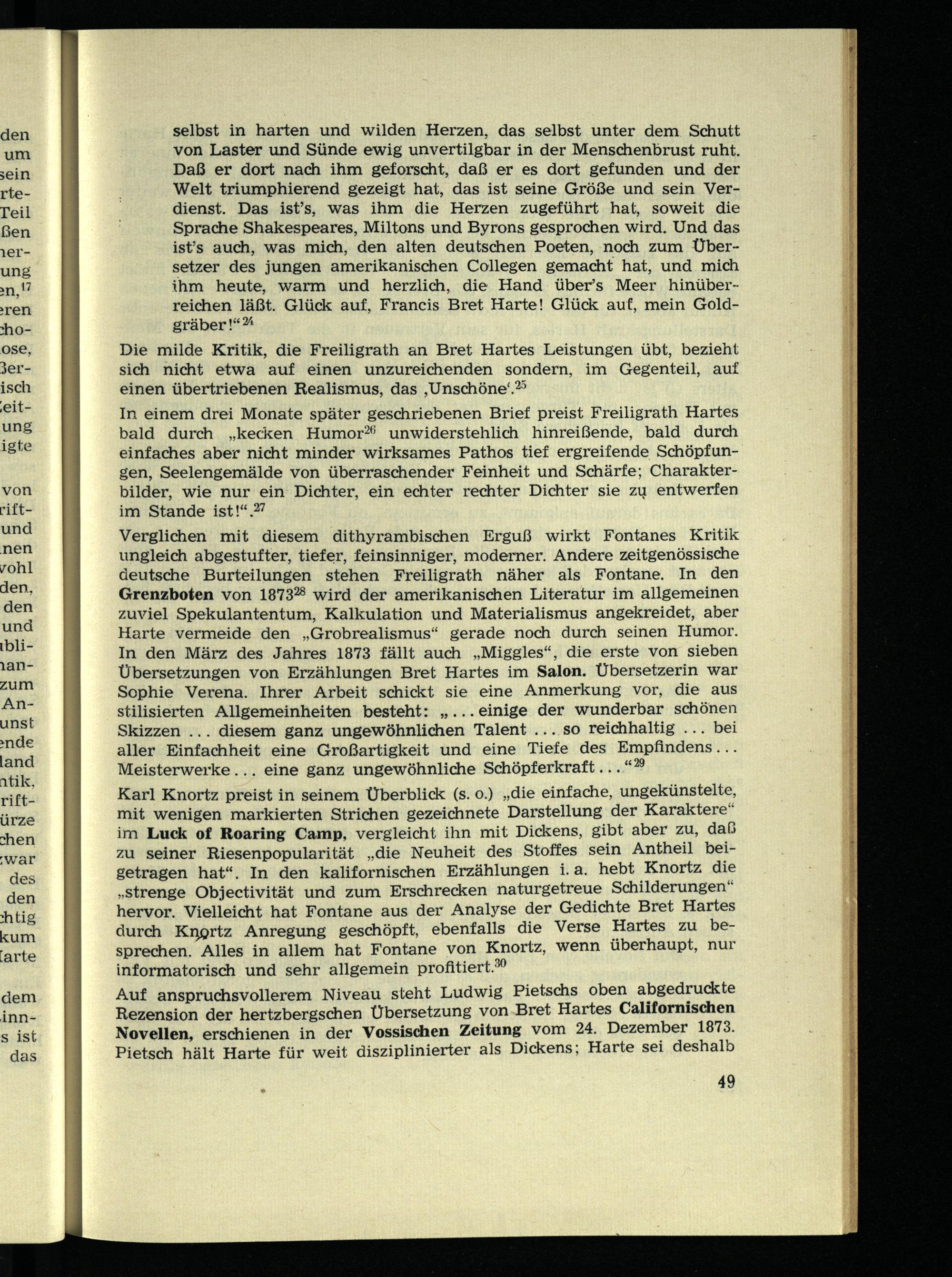 Die milde Kritik, die Freiligrath an Bret Hartes Leistungen übt, bezieht sich nicht etwa auf einen unzureichenden sondern, im Gegenteil, auf einen übertriebenen Realismus, das .Unschöne'. 23