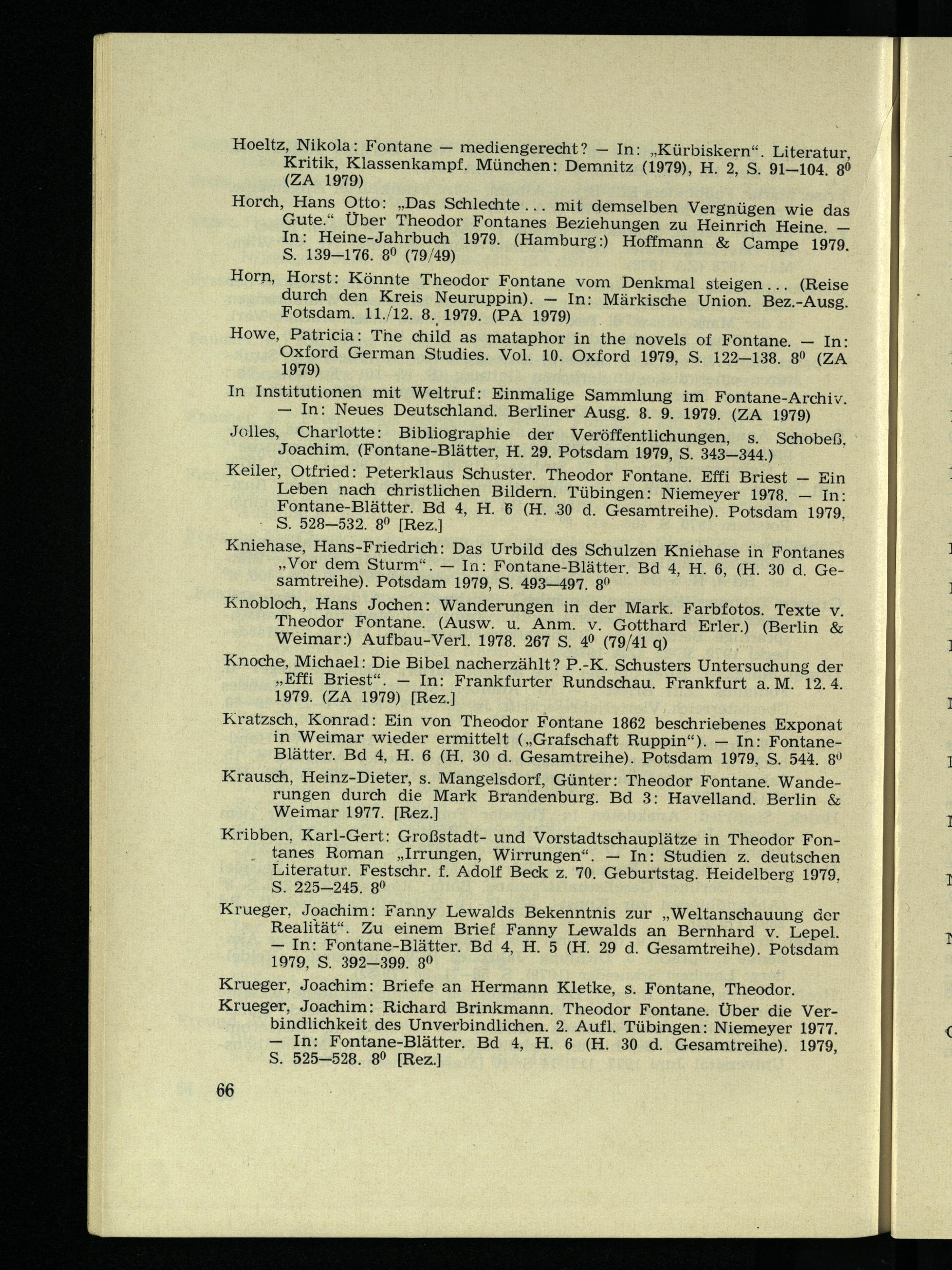 Hoeltz, Nikola: Fontane — mediengerecht? — In: „Kürbiskern“. Literatur, Kritik, Klassenkampf. München: Demnitz (1979), H. 2, S. 91—104 8° (ZA 1979)