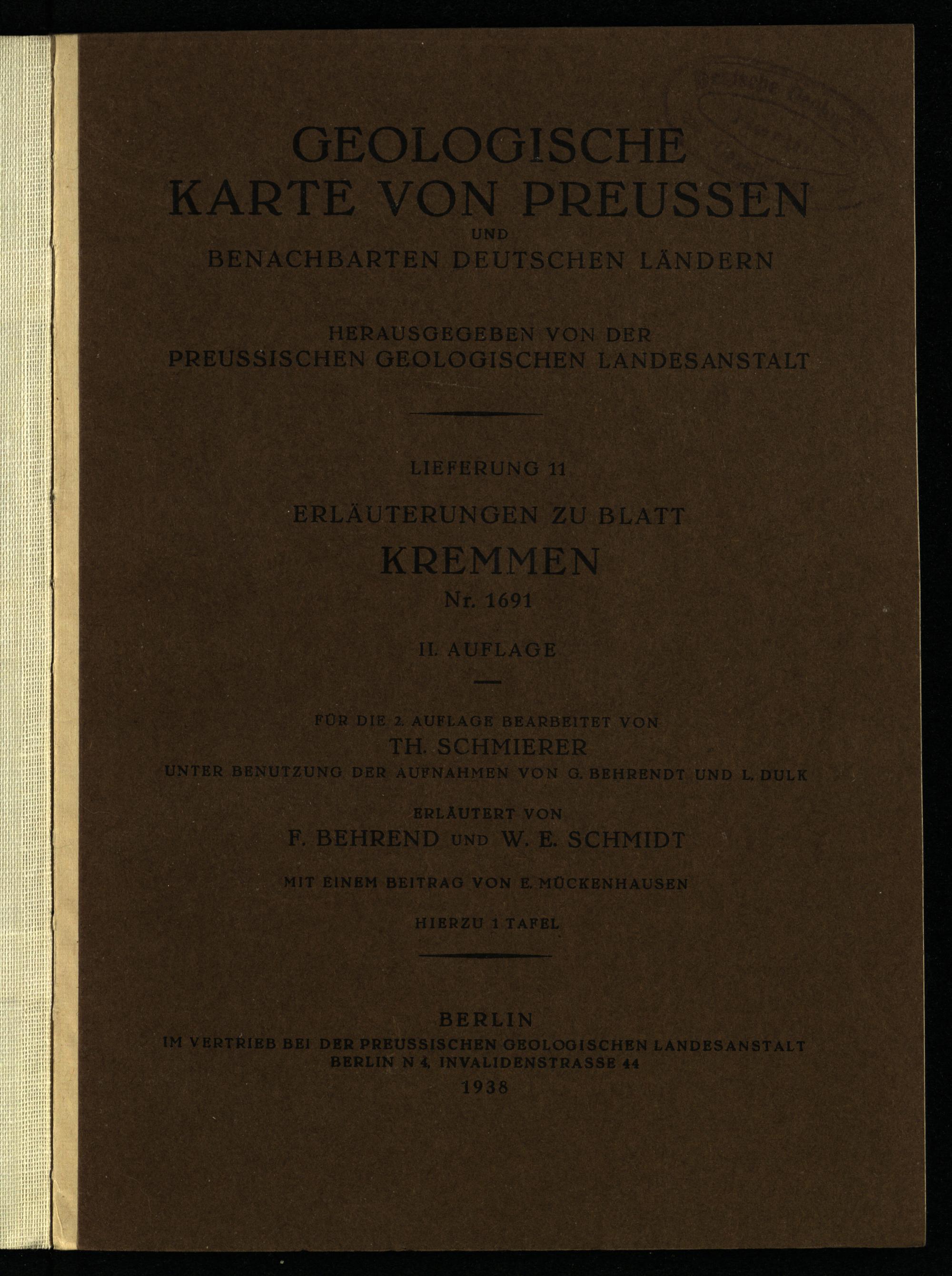1691 = Neue Nr. 3244 (1938) Kremmen / geolog. und agronom. ... bearb. durch Th. Schmierer ...