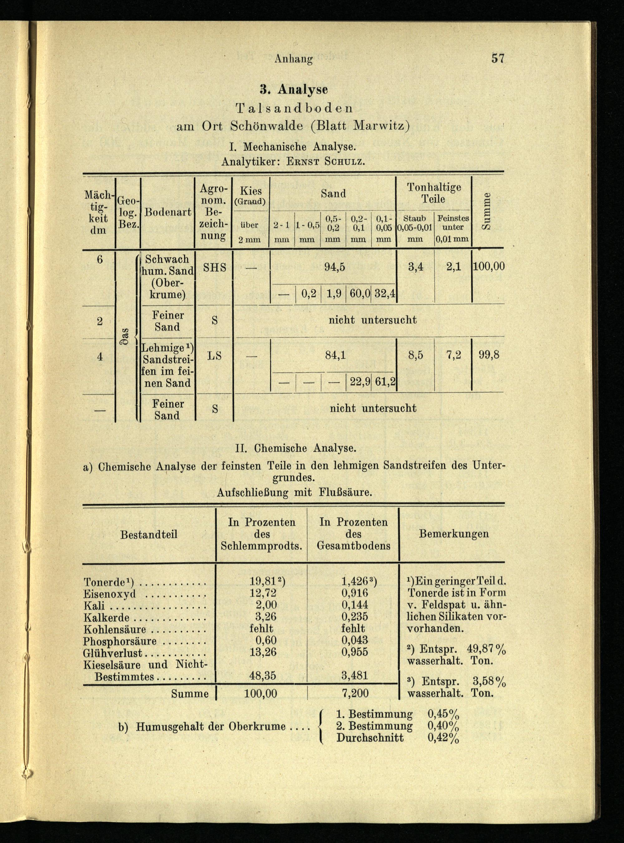 I. Mechanische Analyse. Analytiker: ERNST SCHULZ.