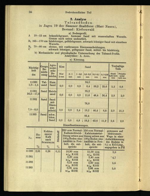2. Analyse Talsandboden in Jagen 19 des Nauener Stadtforst(Blatt Nauen), Bestand: Kiefernwald