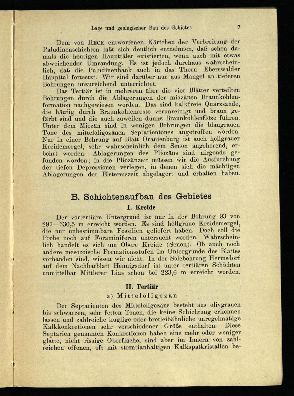 Dem von HECK entworfenen Kärtchen der Verbreitung der Paludinenschichten läßt sich deutlich entnehmen, daß schon damals die heutigen Haupttäler existierten, wenn auch mit etwas abweichender Umrandung. Es ist jedoch durchaus wahrscheinlich, daß die Paludinenbank auch in das Thorn—HEberswalder Haupttal fortsetzt. Wir sind darüber nur aus Mangel an tieferen Bohrungen unzureichend unterrichtet.