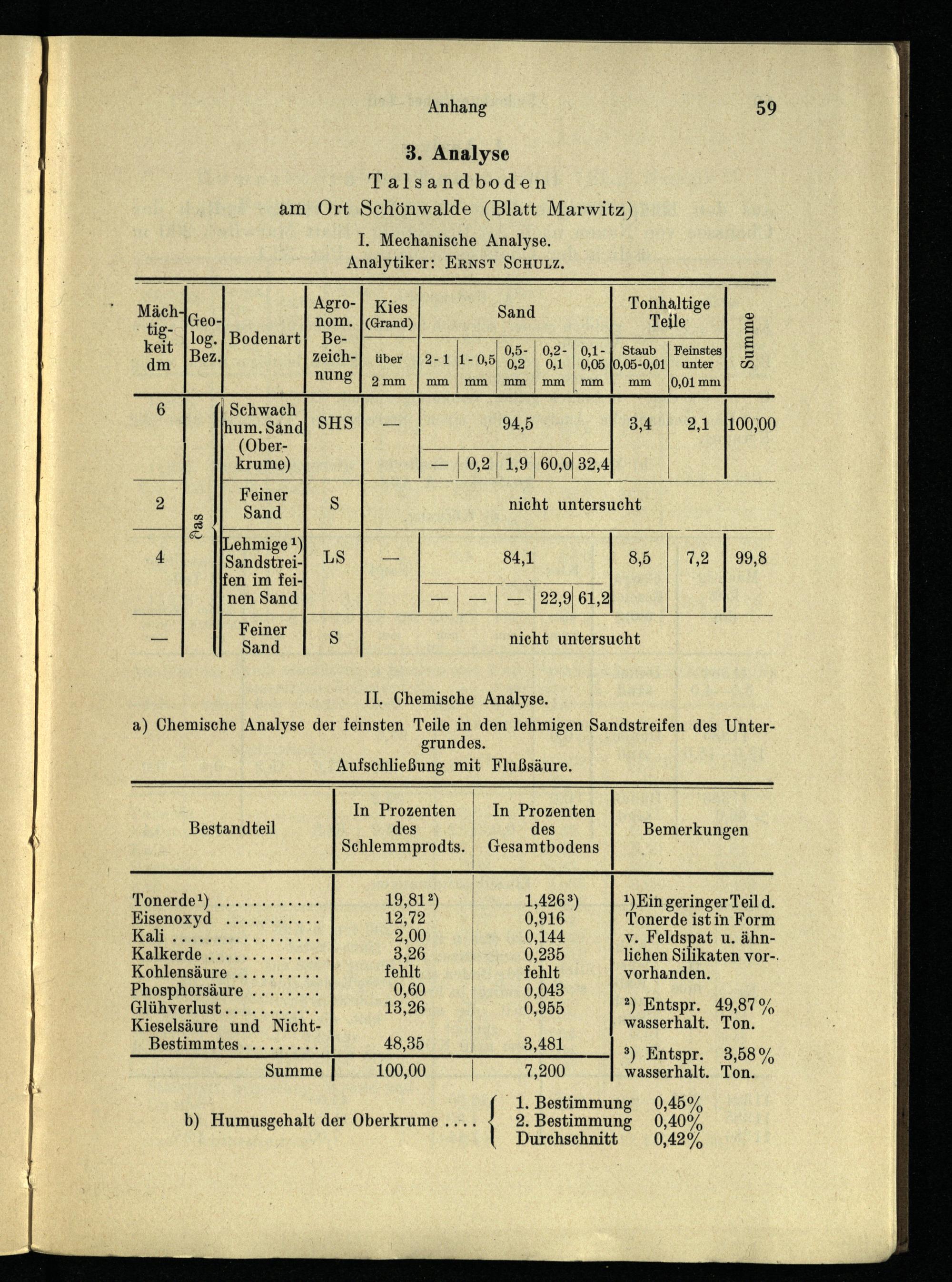 I. Mechanische Analyse. Analytiker: ERNST SCHULZ.