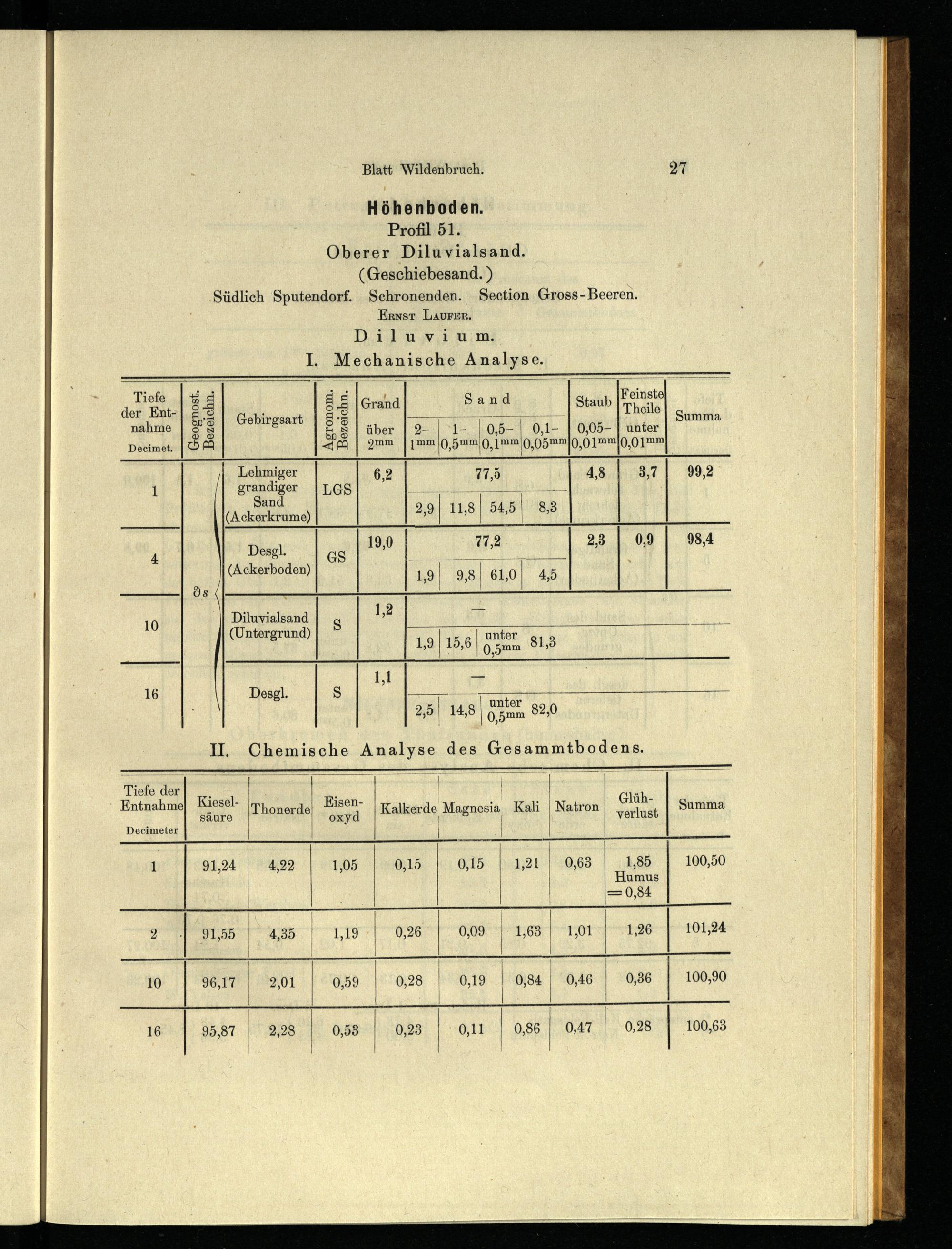Höhenboden. Profil 51. Oberer Diluvialsand. (Geschiebesand.)