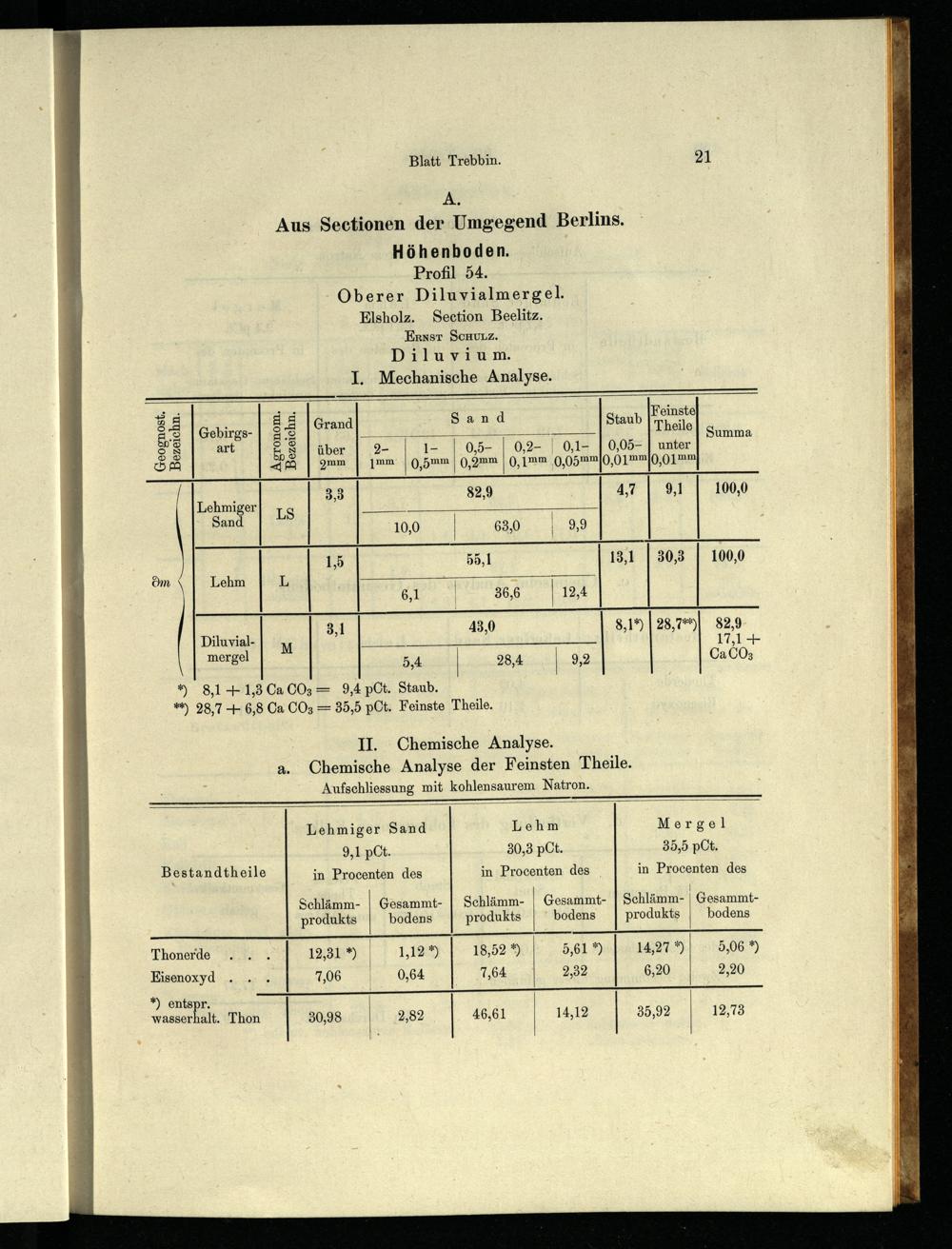 II. Chemische Analyse. a. Chemische Analyse der Feinsten Theile. Aufschliessung mit kohlensaurem Natron.