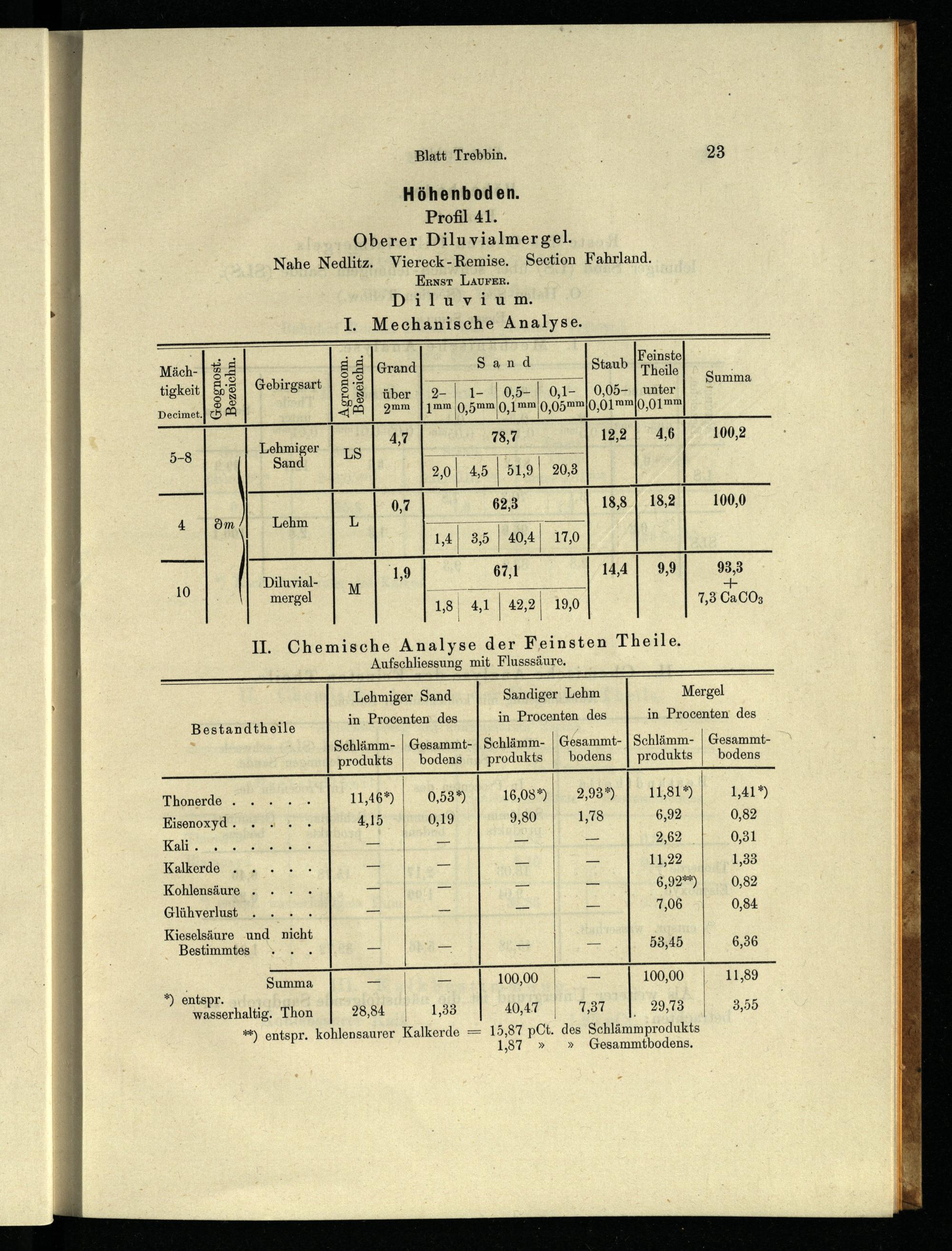 Höhenboden. Profil 41. Oberer Diluvialmergel. Nahe Nedlitz. Viereck-Remise. Section Fahrland. Ernst LAUFER. Diluvium
