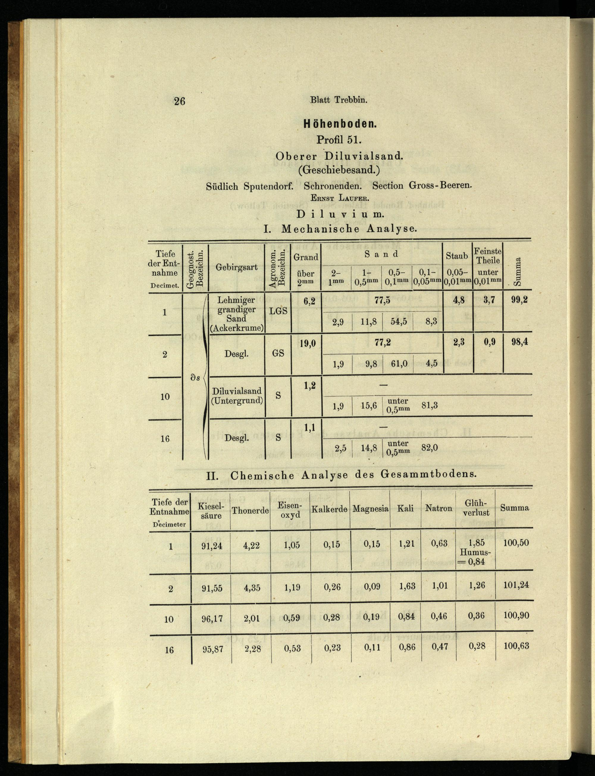 Höhenboden. Profil 51. Oberer Diluvialsand. (Geschiebesand.)