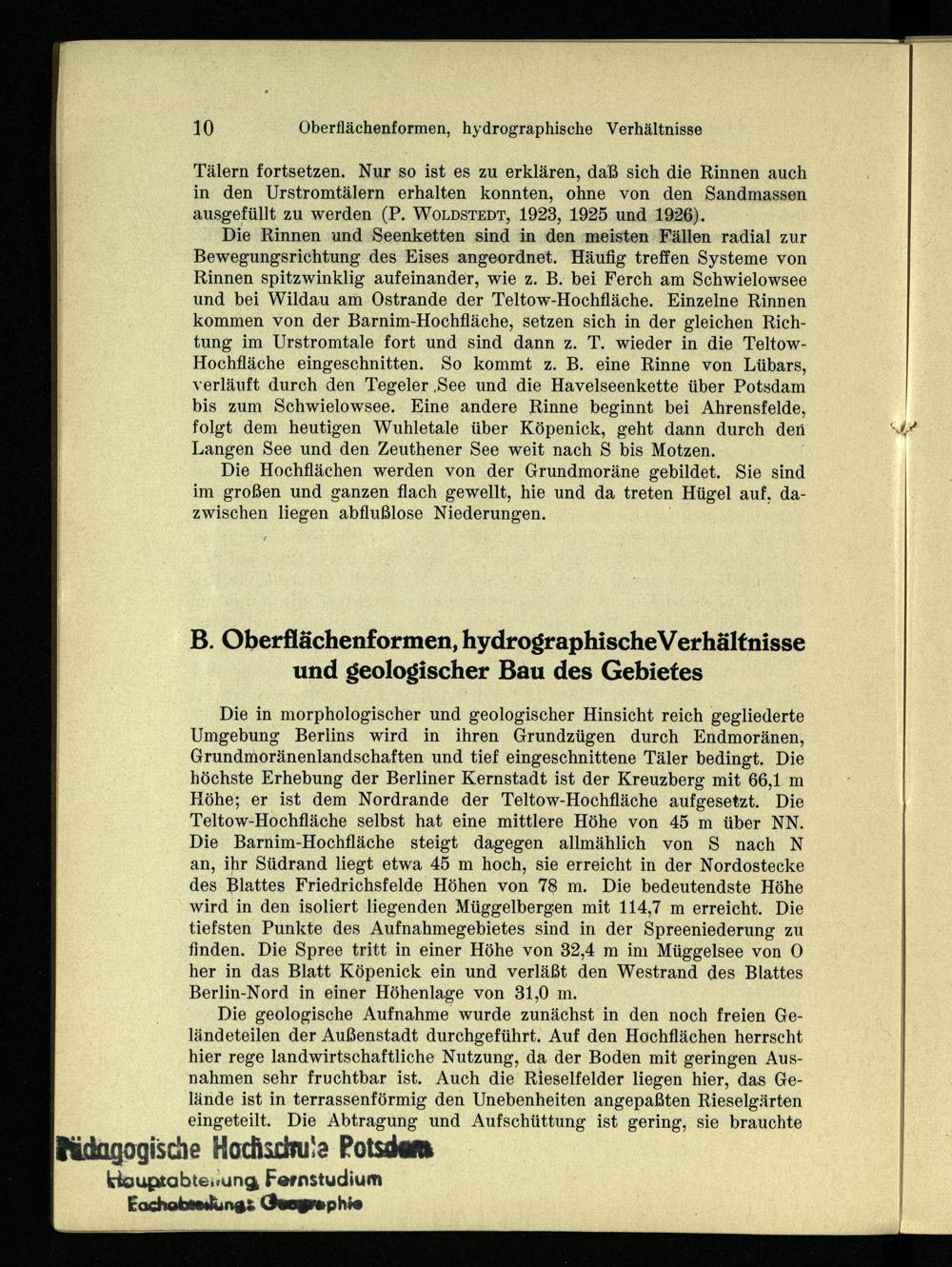 B. Oberflächenformen, hydrographische Verhältnisse und geologischer Bau des Gebietes