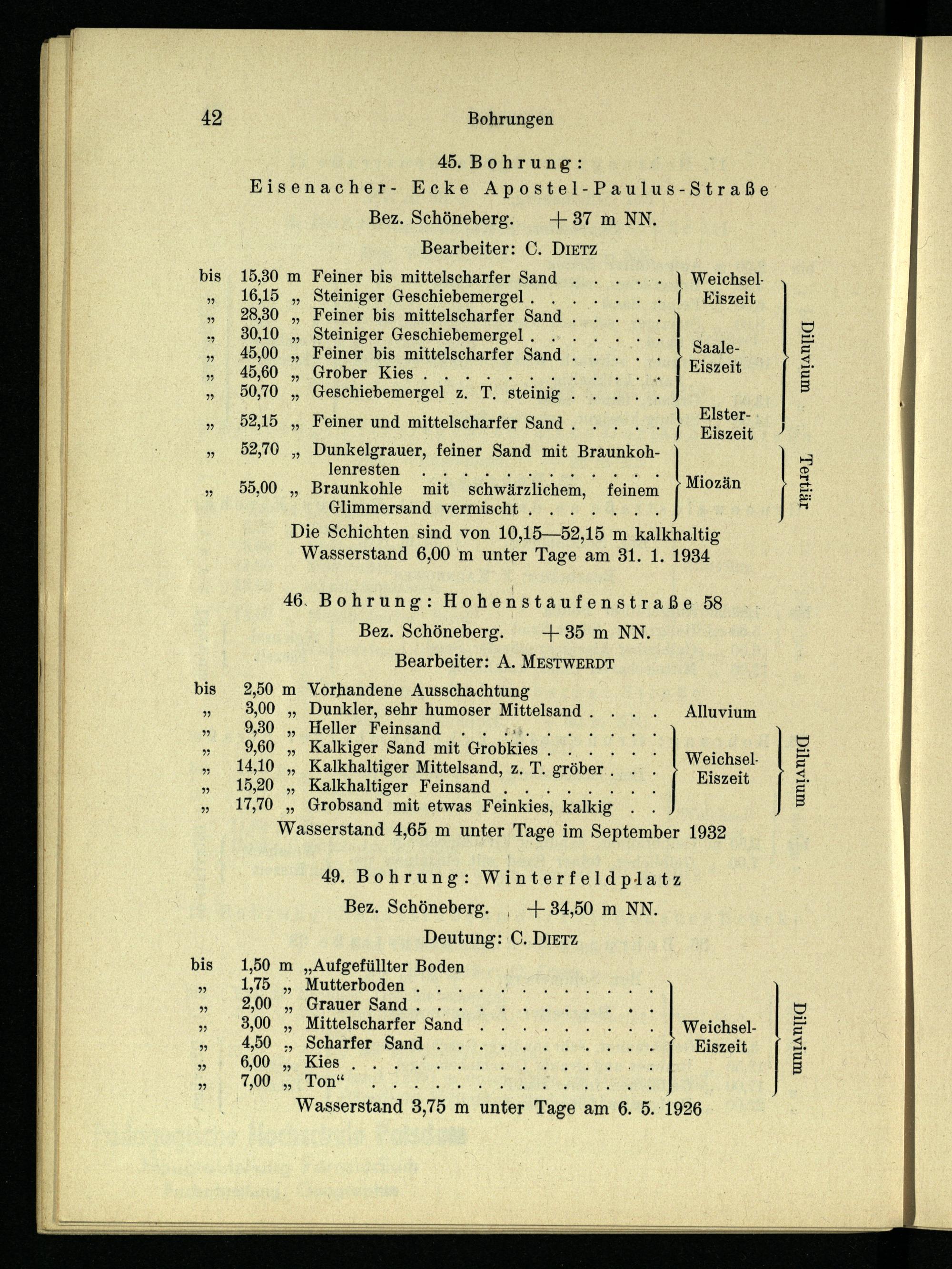 45. Bohrung: Eisenacher- Ecke Apostel-Paulus-Straße Bez. Schöneberg.+37 m NN. Bearbeiter: C. DIETZ