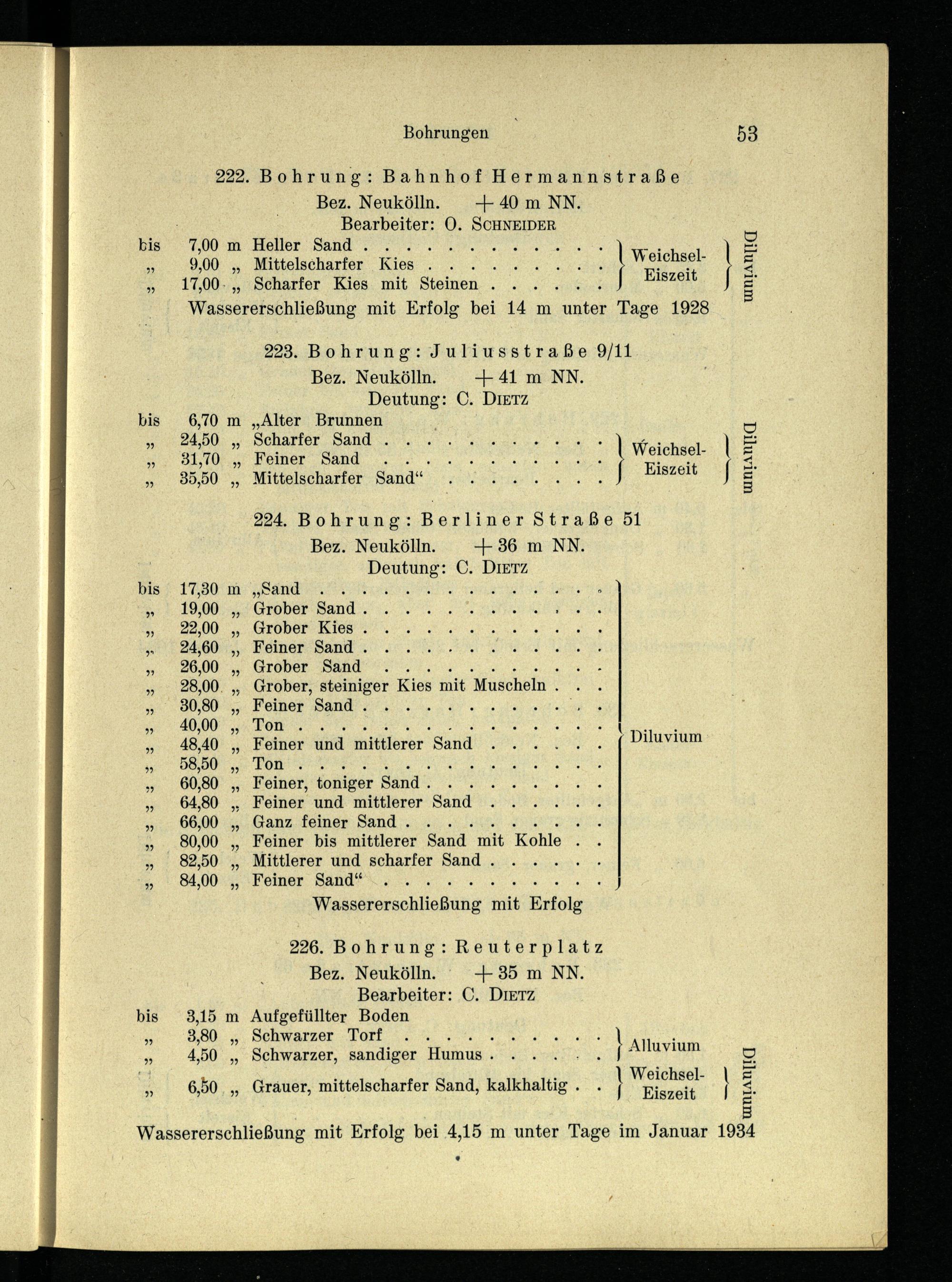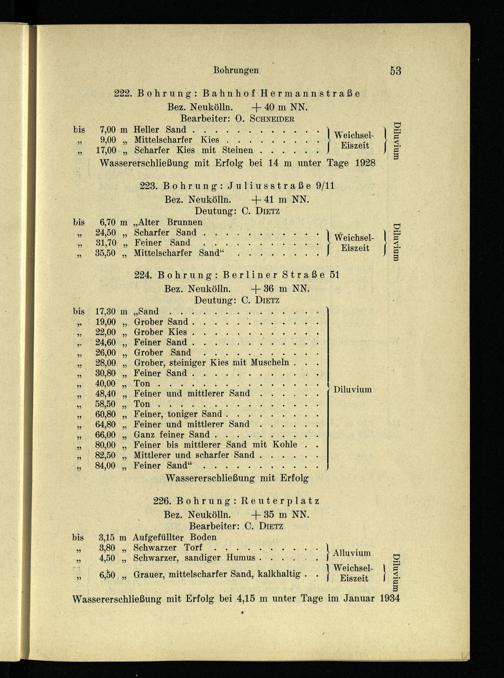 222. Bohrung: Bahnhof Hermannstraße Bez. Neukölln.+40 m NN. Bearbeiter: 0. SCHNEIDER