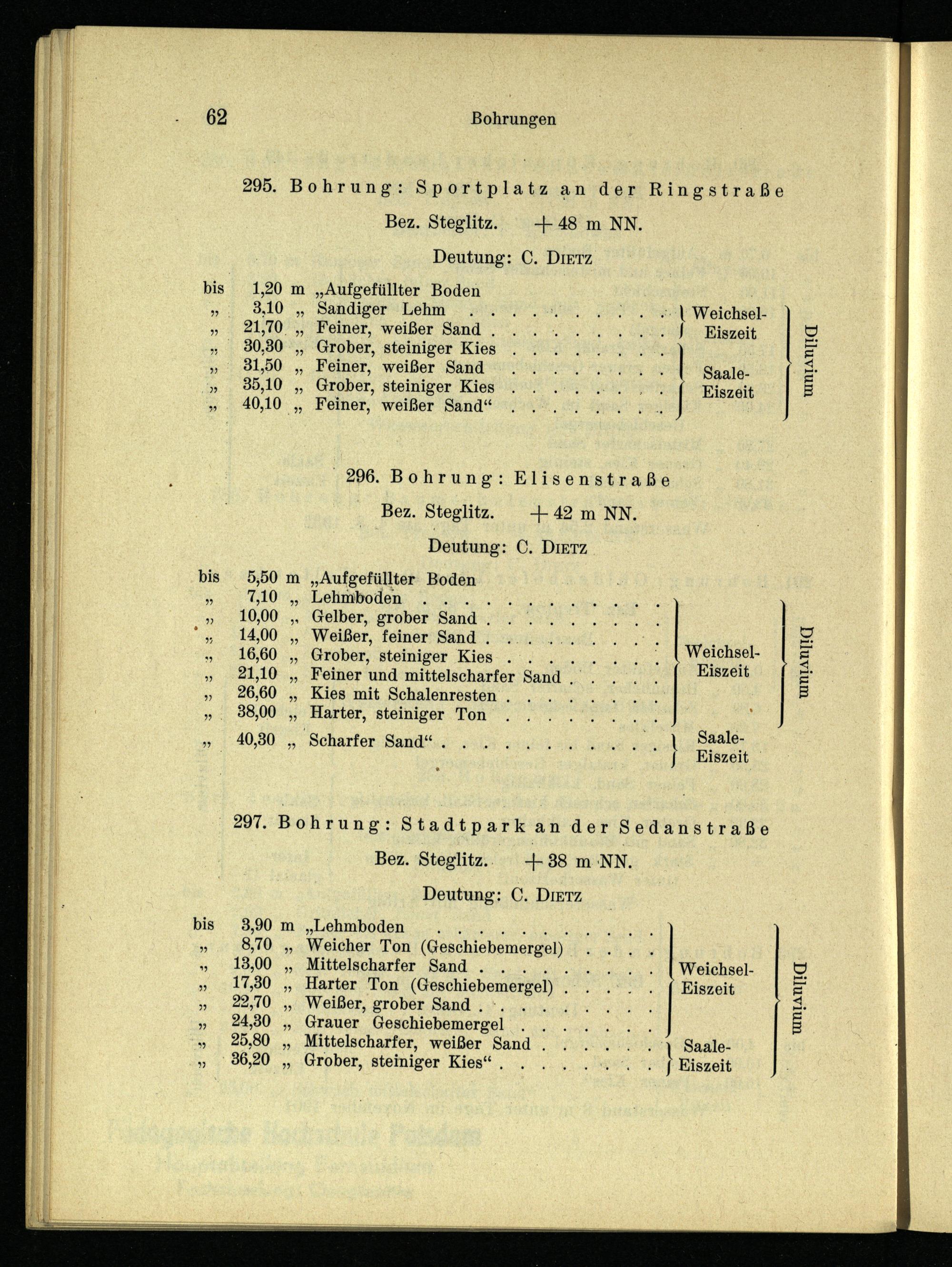 295. Bohrung: Sportplatz an der Ringstraße Bez. Steglitz.+48 m NN. Deutung: C. DIETz