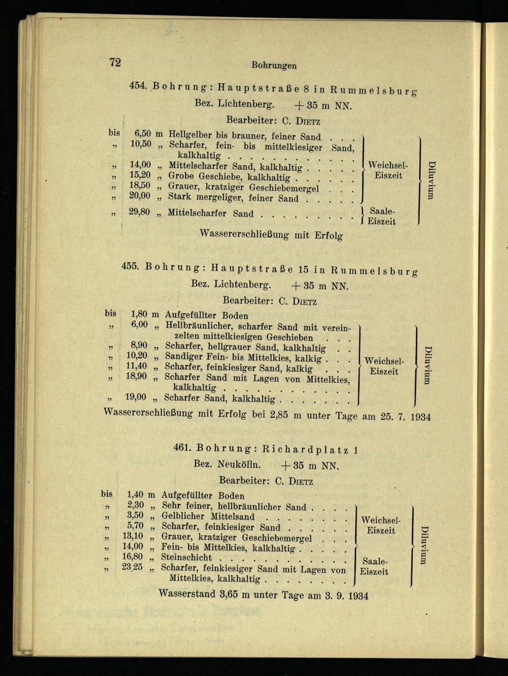 461. Bohrung: Richardplatz 1 Bez. Neukölln.+35 m NN. Bearbeiter: C. Dietz