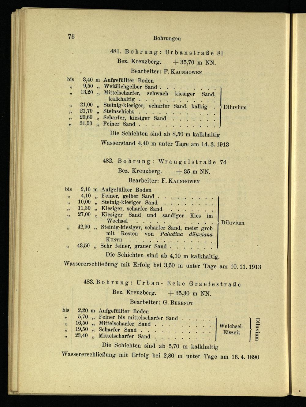 481. Bohrung: Urbanstraße 81 Bez. Kreuzberg.-+35,70 m NN. Bearbeiter: F. KAUNHOWEN