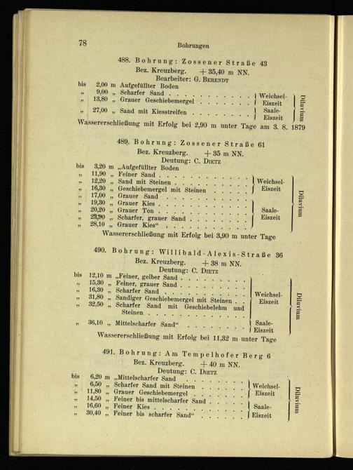 Bez. Kreuzberg.-+ 35,40 m NN. Bearbeiter: G. BERENDT is 2,00 m Aufgefüllter Boden % 9,00: Scharfer Sand....+... x} Weichsel13,80„ Grauer Geschiebemergel‘.. J Eiszeit | Saale‘ J Eiszeit